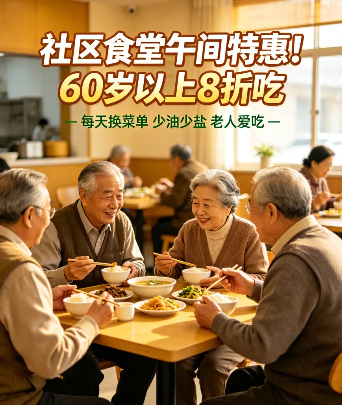 3.**额外福利**:部分社区食堂对80岁以上高龄老人、特困老人,还能享受更低折扣甚至免费餐食