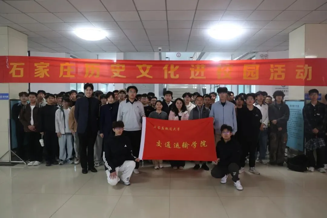 为传承弘扬中华优秀传统文化,让青年学子近距离触摸石家庄的历史根脉、感知城市文化底蕴,4月8日下午,石家庄市博物馆联合石家庄铁道大学交通运输学院,在该校第一教学楼一楼大厅,成功举办“历史文化巡展进校园”主题团日活动。石家庄市博物馆专业讲解团队亲临现场,与铁道大学百余位师生共赴一场沉浸式的文脉之约。