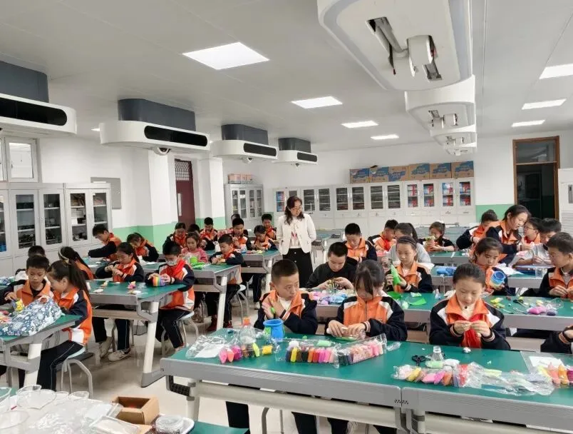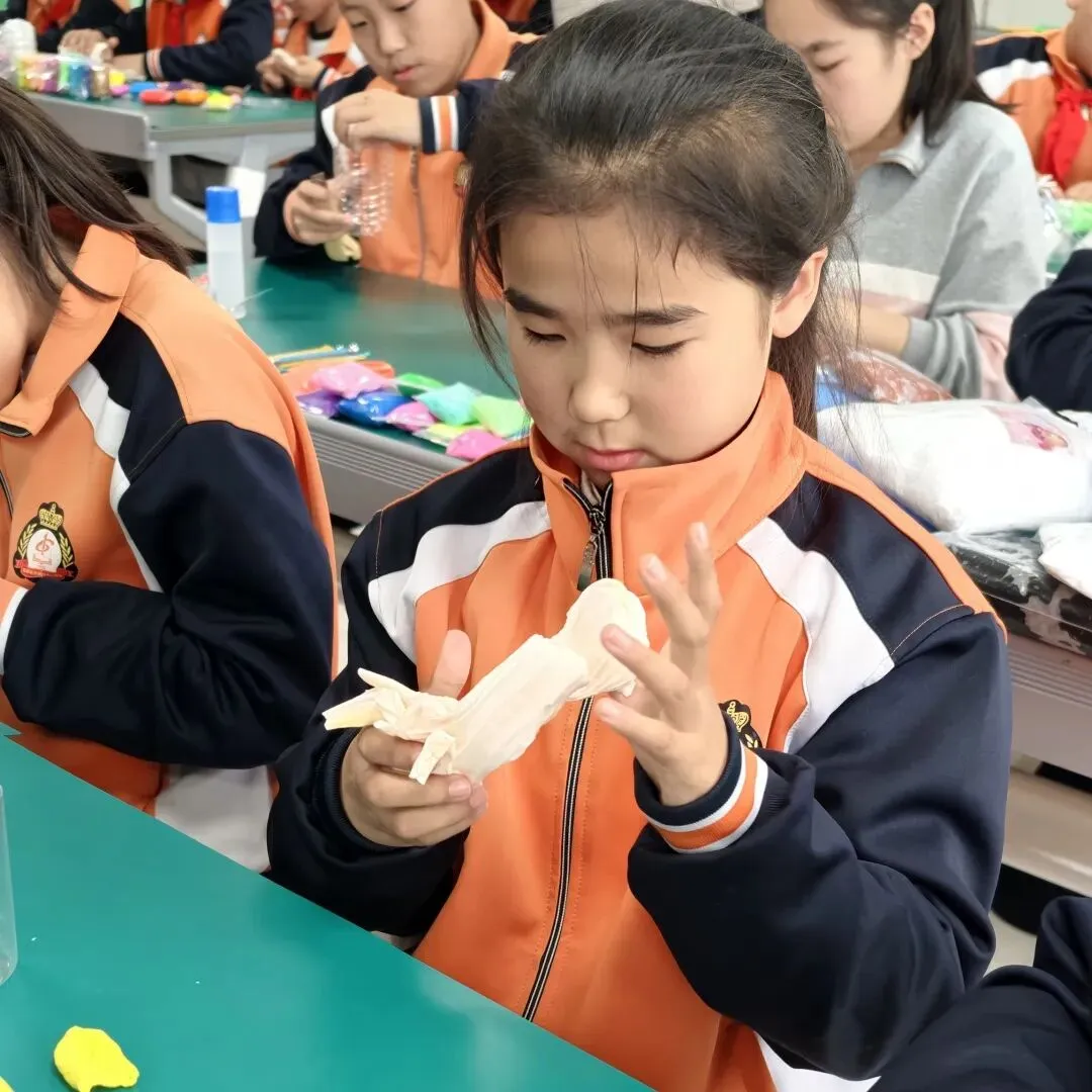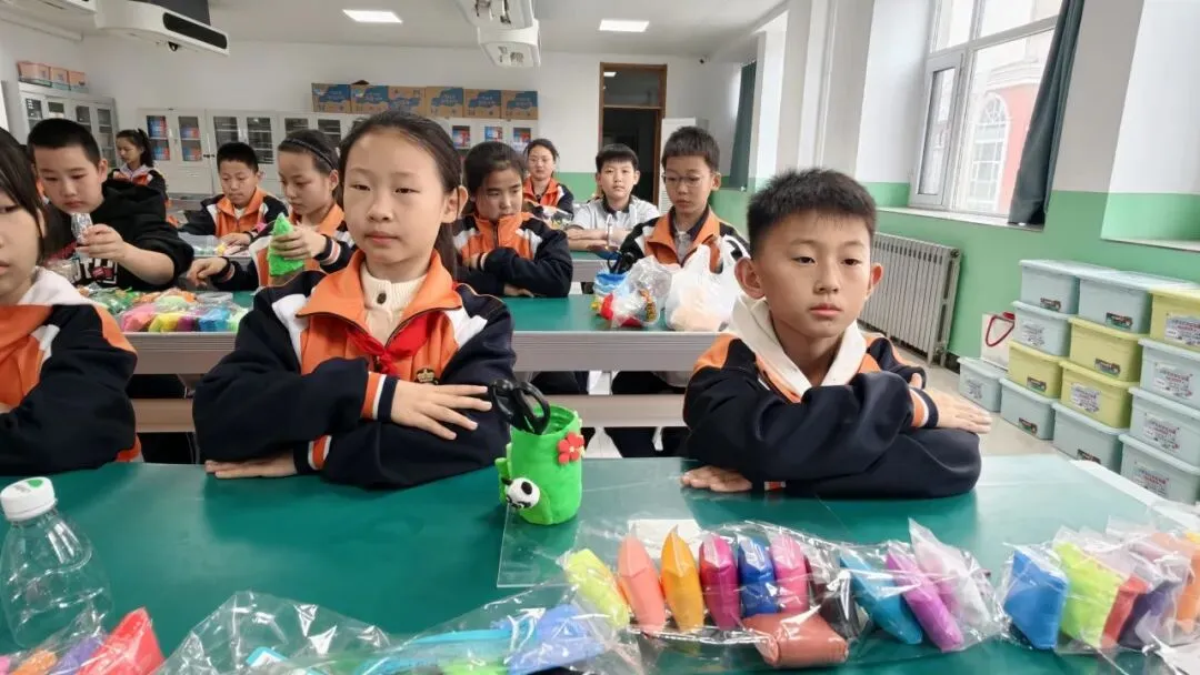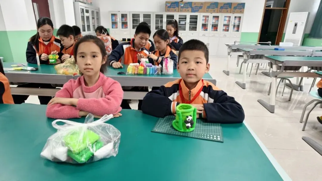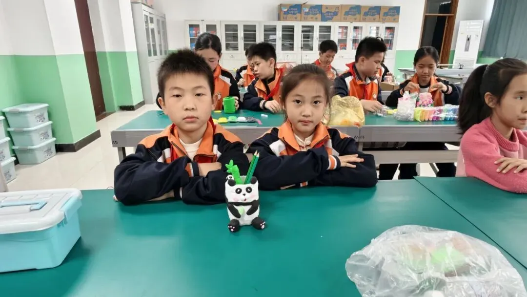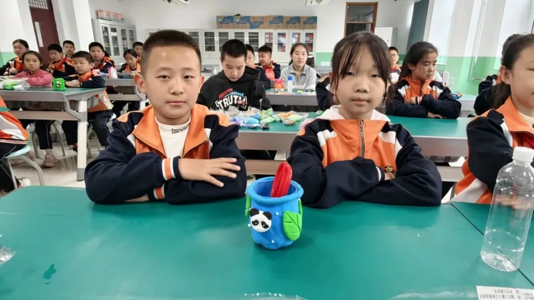 高年级组比赛现场精彩纷呈。同学们以小组为单位,利用各色彩泥,通过揉、捏、搓、压、刻等技法,将普通彩泥变成了一件件兼具实用与美感的笔筒作品。有的以海洋为主题,蓝色波浪环绕筒身,海星、贝壳点缀其间;有的打造出童话城堡造型,色彩斑斓、充满童趣;还有的将废旧瓶罐作为内芯,外层用彩泥精心装饰,变废为宝。创作时间结束后,一个个独一无二的彩泥笔筒整齐陈列,令人眼前一亮。