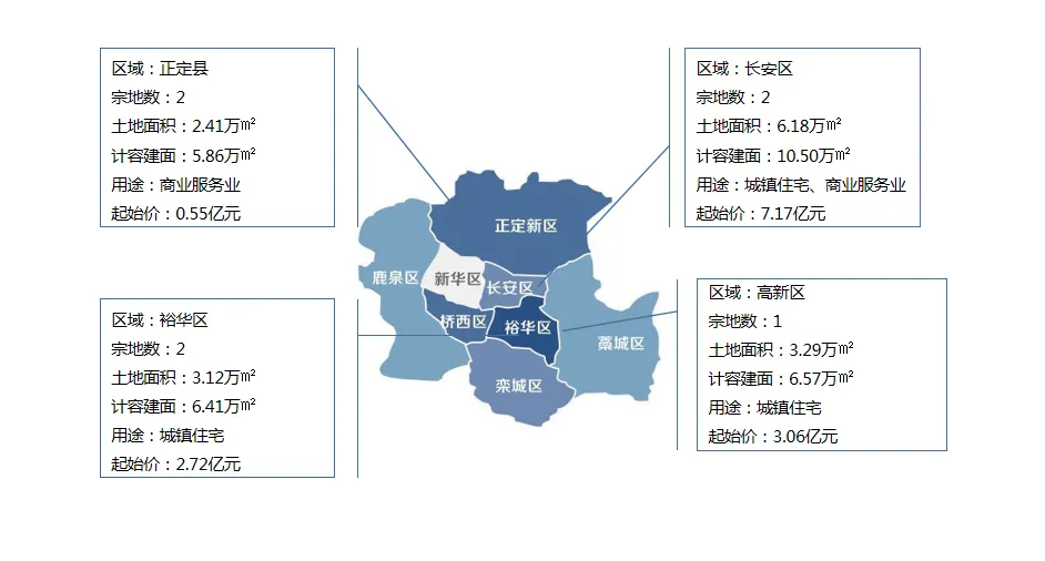 2026年3月,石家庄市(含正定新区)共供应土地16宗(含补证地块),含4宗住宅用地、1宗住宅商服用地、2宗商服用地、1宗科研用地、8宗工业用地,总面积约42.46万平米(约合636.83亩),总起始价约为15.95亿元。