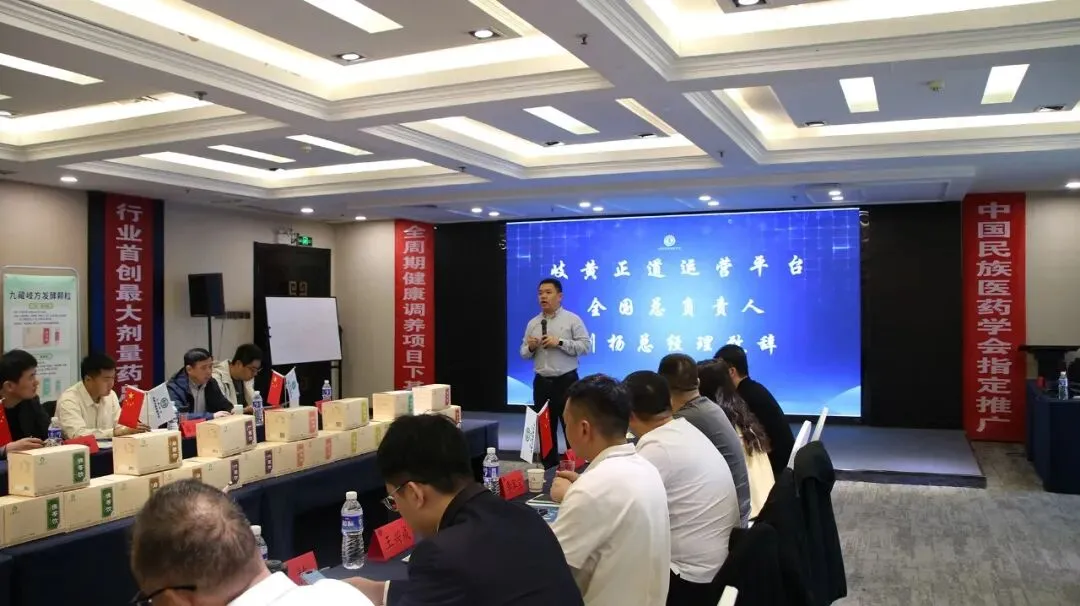 下午2时30分会议继续进行。项目总负责人刘杨总经理作规划部署,发表了热情洋溢的讲话。他从市场困境、国家对中医药及药食同源的政策扶持、基层诊疗如何破局等角度作了全面解析,明确指出“走慢病调理、走差异化”才是破局的最佳路径。同时,他还详细阐述了九藏岐方的理论体系、核心优势及市场运营策略,内容干货满满,现场掌声不断,得到了与会所有人员的高度认可与赞同。