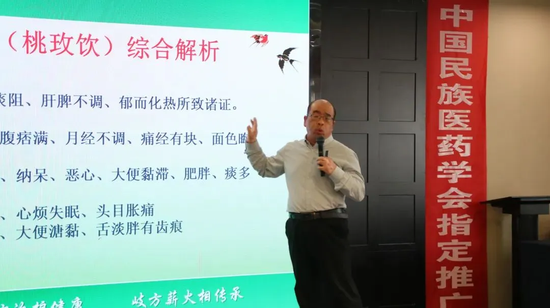 紧接着,全国学术部长王建力从学术层面出发,对九藏岐方理论体系进行了详细溯源,逐一深入解析了1至9号方的分属脏系、功效主治及方解,并阐明了各方剂之间的内在关联;专业的解读、详实的内容,赢得了现场与会人员的阵阵掌声与高度认可。