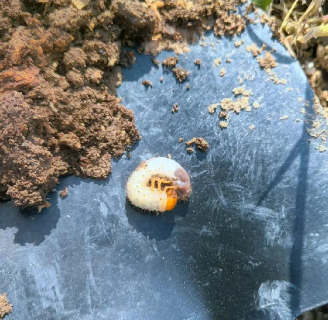 4、蛴螬。金龟子的幼虫,随土温回升,越冬幼虫上移至表土层取食植物根、块茎以及幼苗等。寄主植物:草坪草、麦冬、白三叶、金叶女贞等。