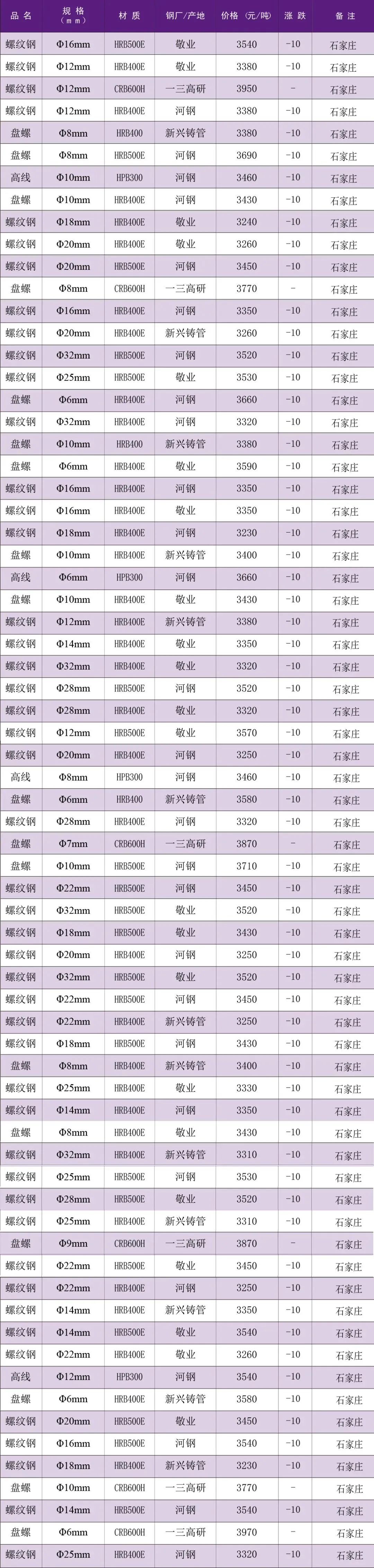 【每日一价】4月10日石家庄市场建筑钢材价格行情