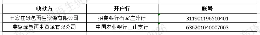 说明:如需压包回收,打包机由厂家自带,自行安排人员压包;装车时如需使用我司叉车物资,需额外10元/吨装车费。
