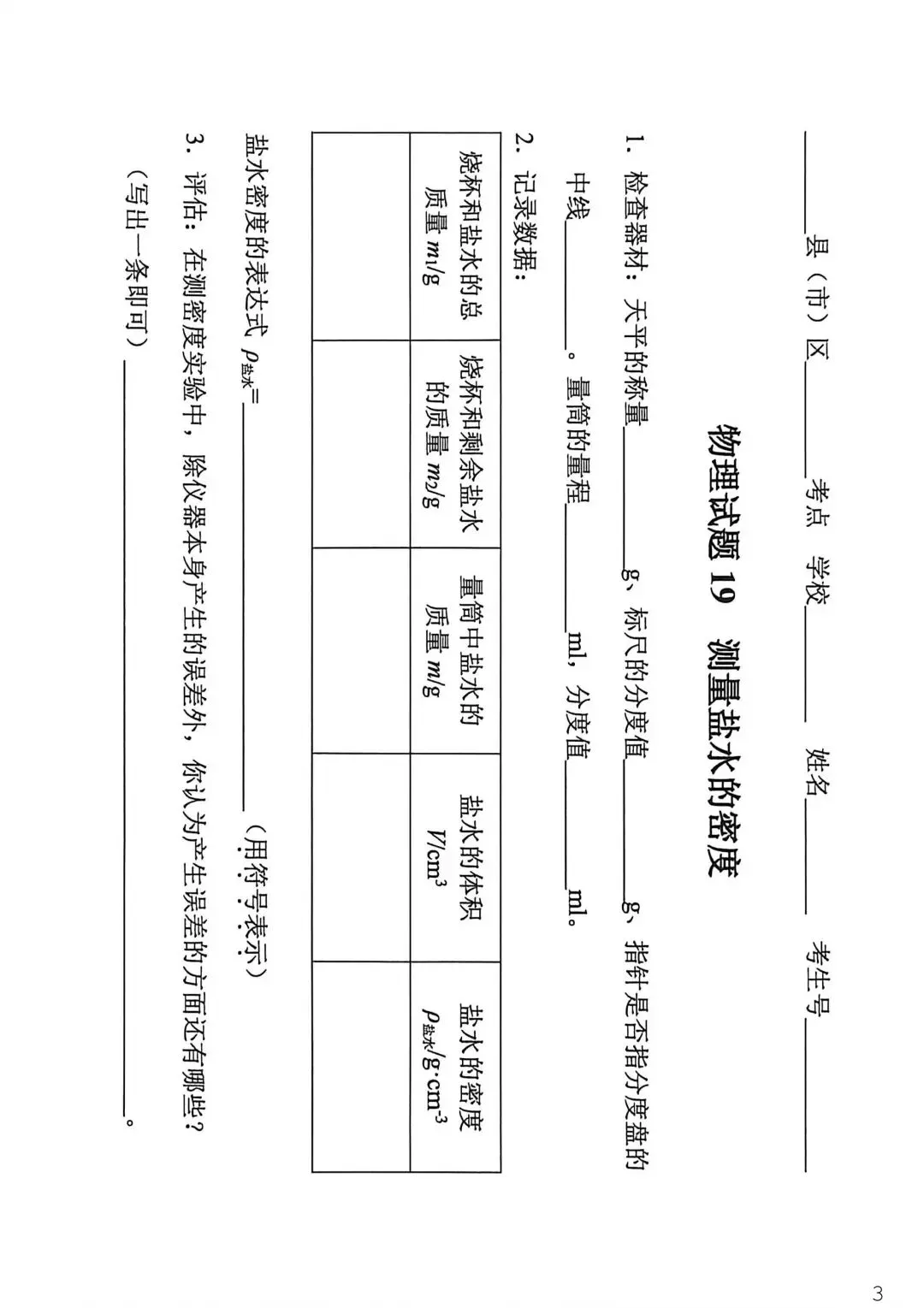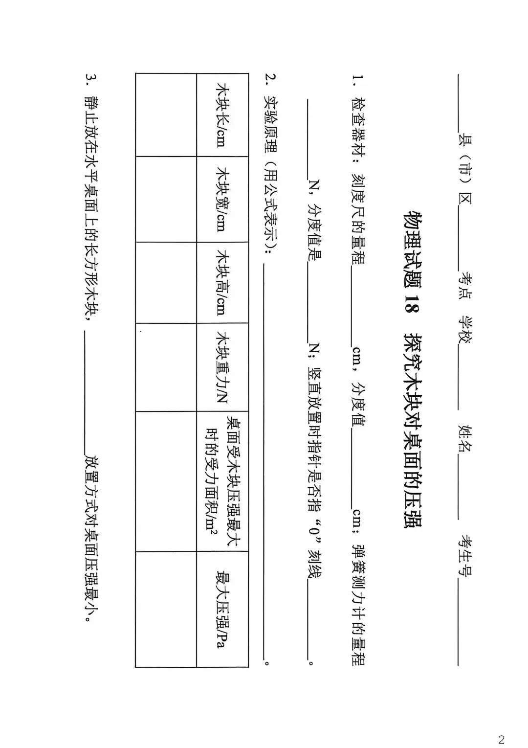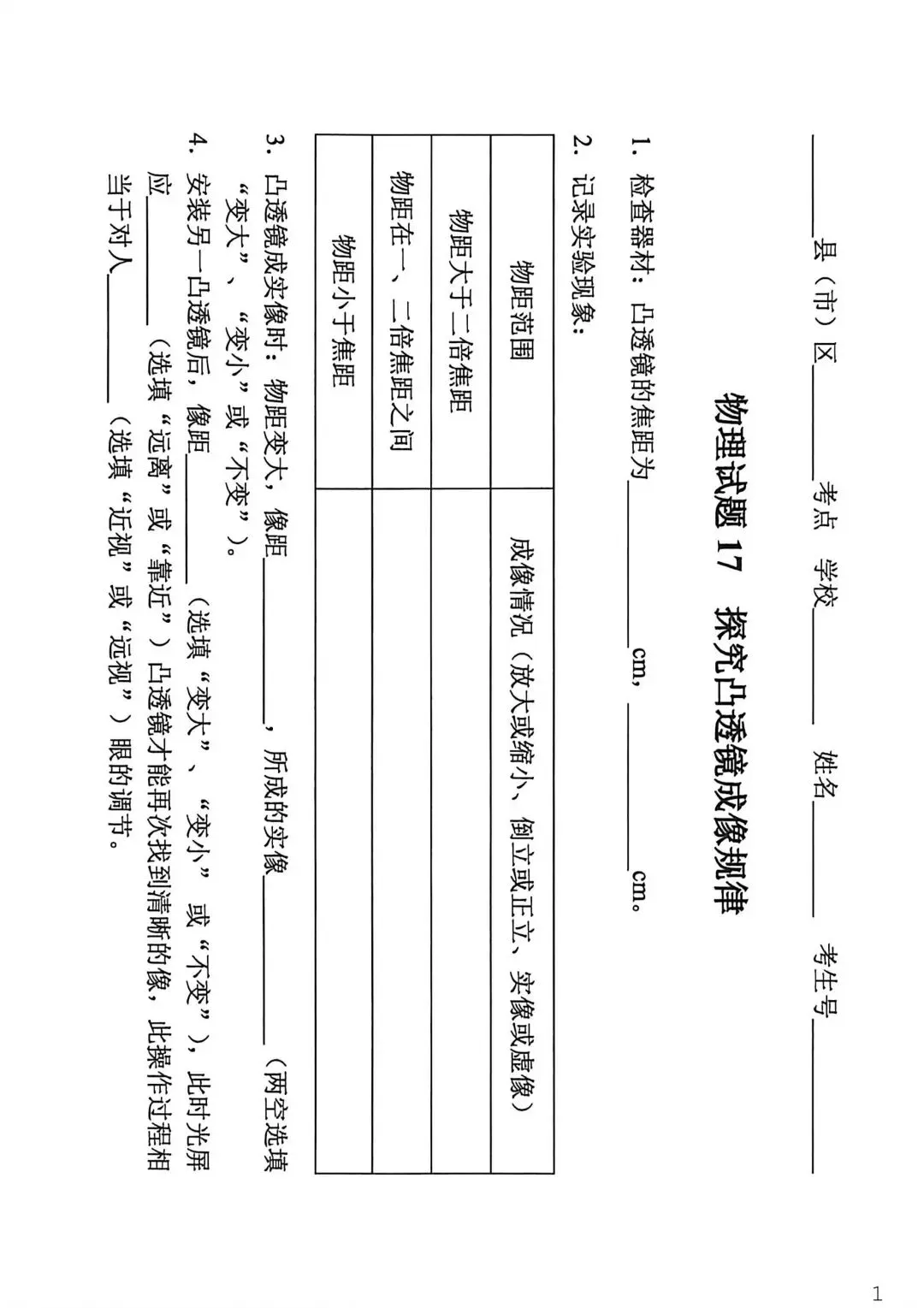 2026石家庄中考物理实验考试 可打印