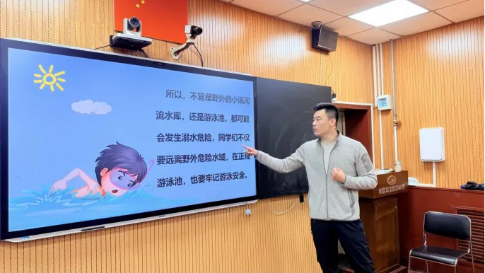 “如果有同学不小心落水,你的第一反应是伸手去拉吗?错!这很可能是最危险的‘死亡牵手’。”在多媒体教室,教练以一个触目惊心的场景假设开场,瞬间抓住了孩子们的注意力,随后向大家科普安全施救知识。他提醒,未成年人切勿盲目下水,首要任务是大声呼救并及时拨打救援电话,同时可利用竹竿、树枝等工具伸向落水者,或抛掷空瓶、泡沫板等漂浮物辅助救援。