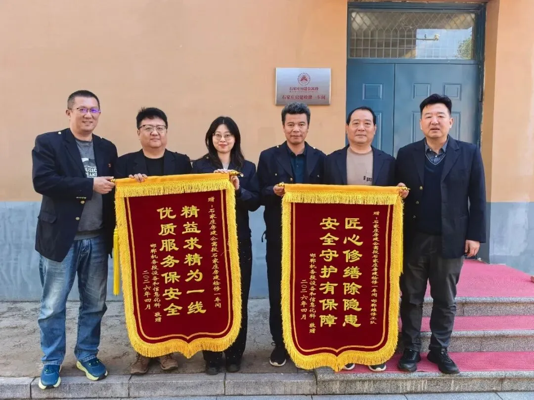 石家庄房建检修一车间收到邯郸机务段赠送锦旗两面,高度称赞车间干部职工坚守一线,以工匠精神筑牢安全防线的精神态度。车间将抓实安全基础,提升服务质效,持续守护房建设备安全。(李鸿)