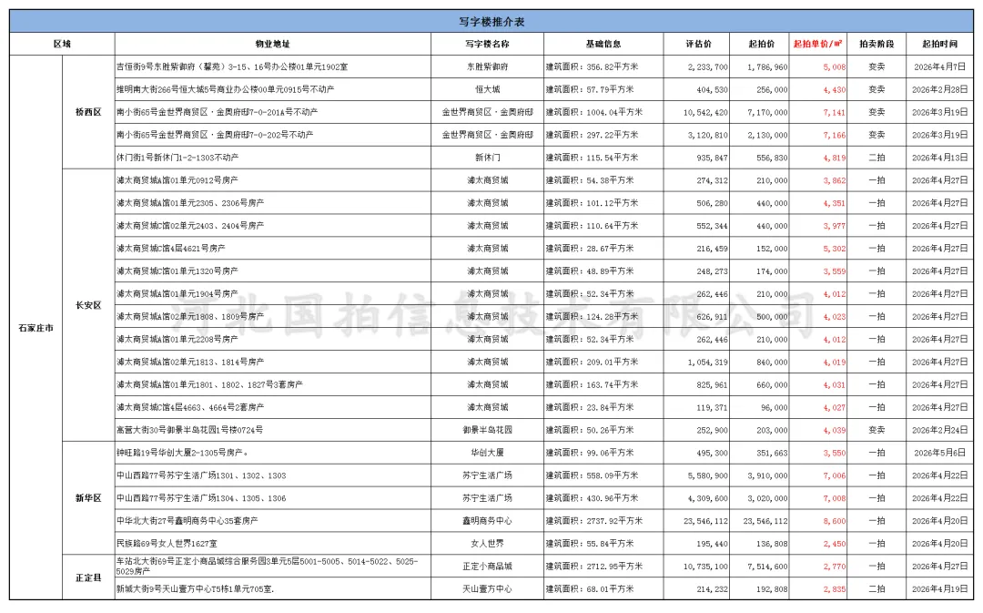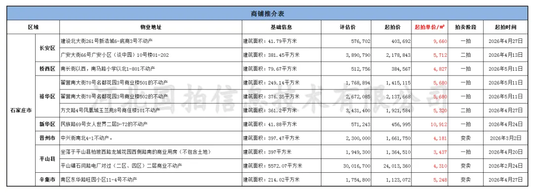 京东司法拍卖商业房源汇总