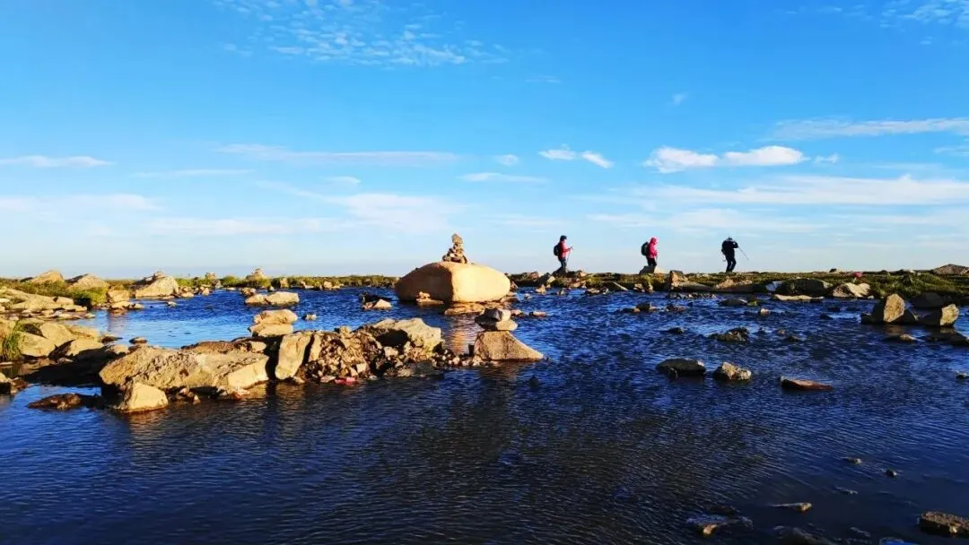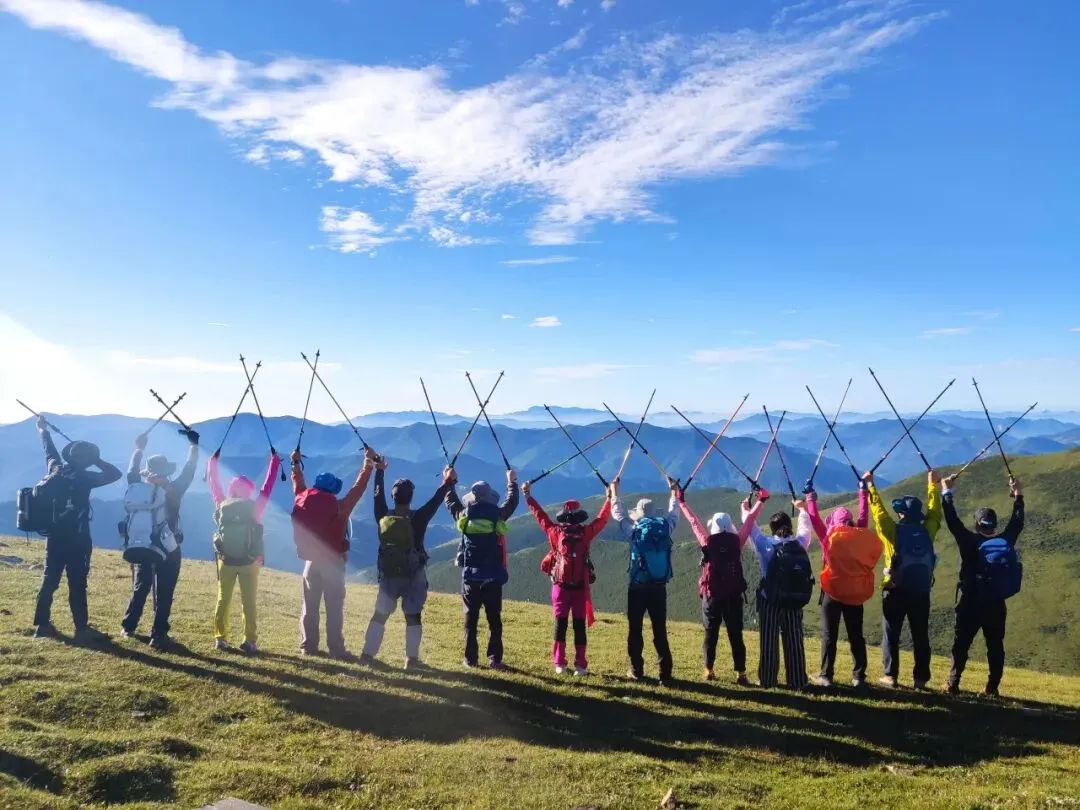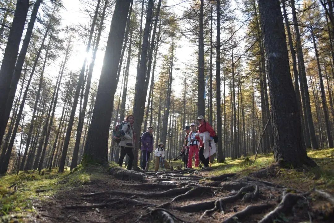 早餐后,我们开始朝拜最后一个台顶【南台锦绣峰】。沿途林荫繁茂,山花漫野,完美诠释了“锦绣”之名。在这般美景中徒步,大家放松下来,在松林与草甸间留下难忘的身影。