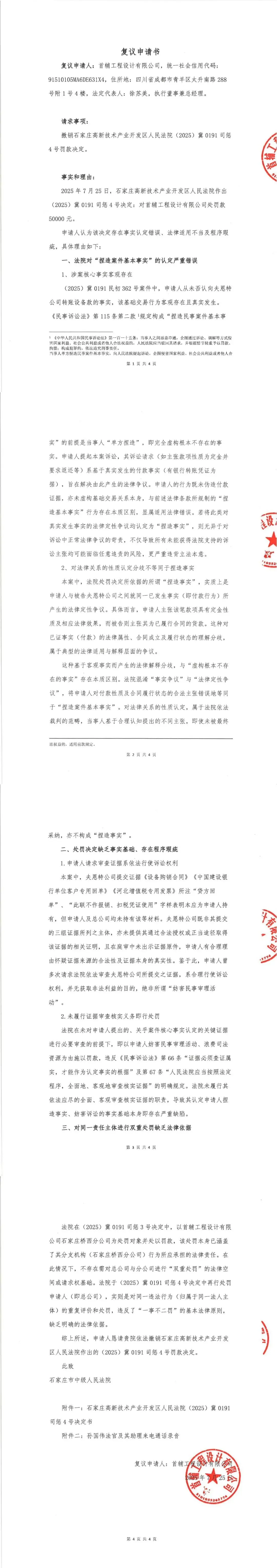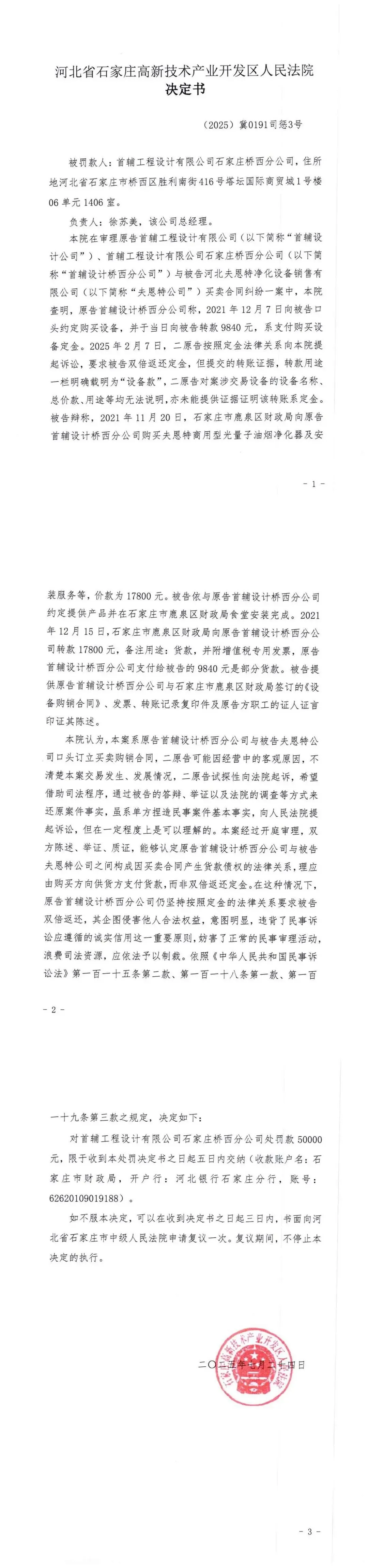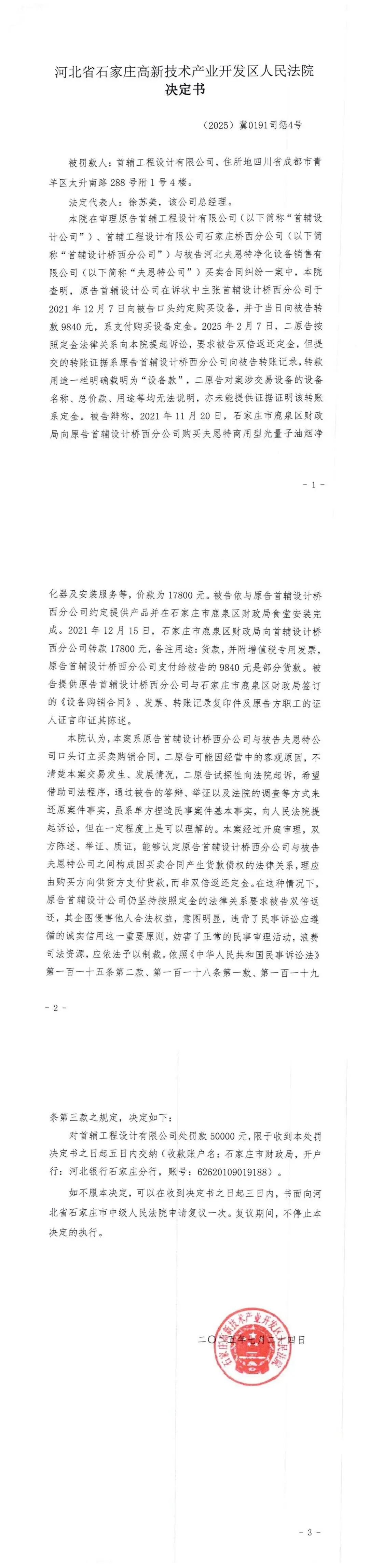 附件一:石家庄高新技术产业开发区人民法院(2025)冀0191司惩4号、3号决定书