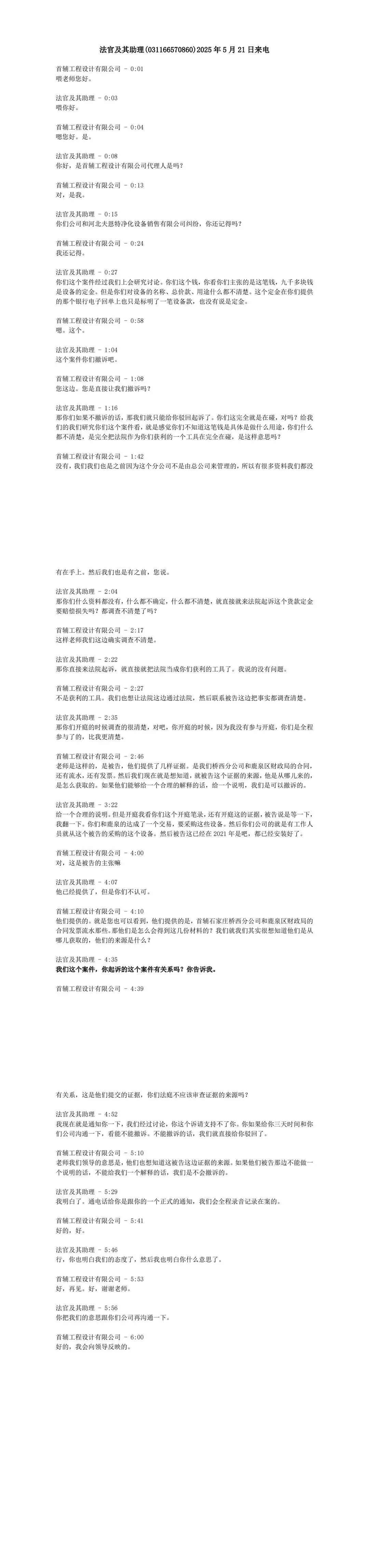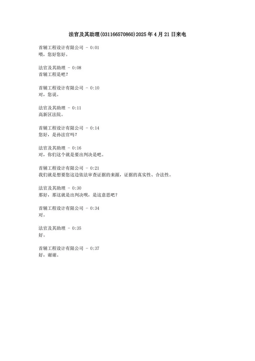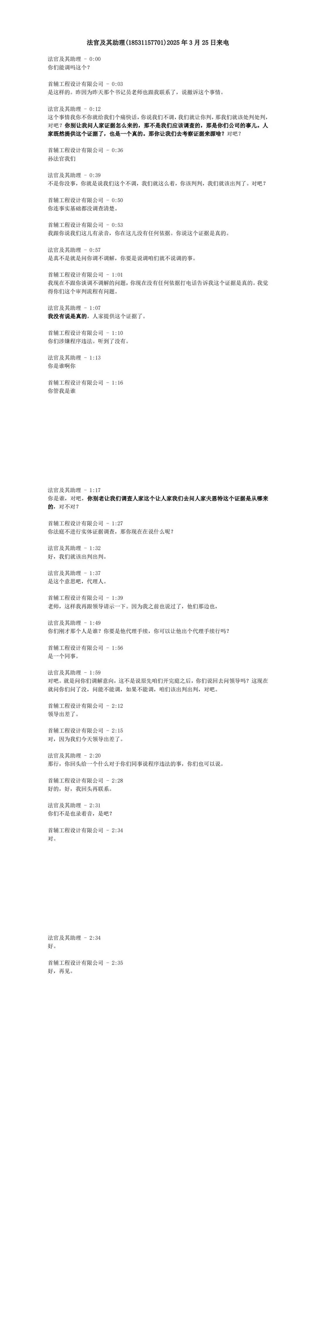 附件二:孙国伟法官及其助理来电通话录音