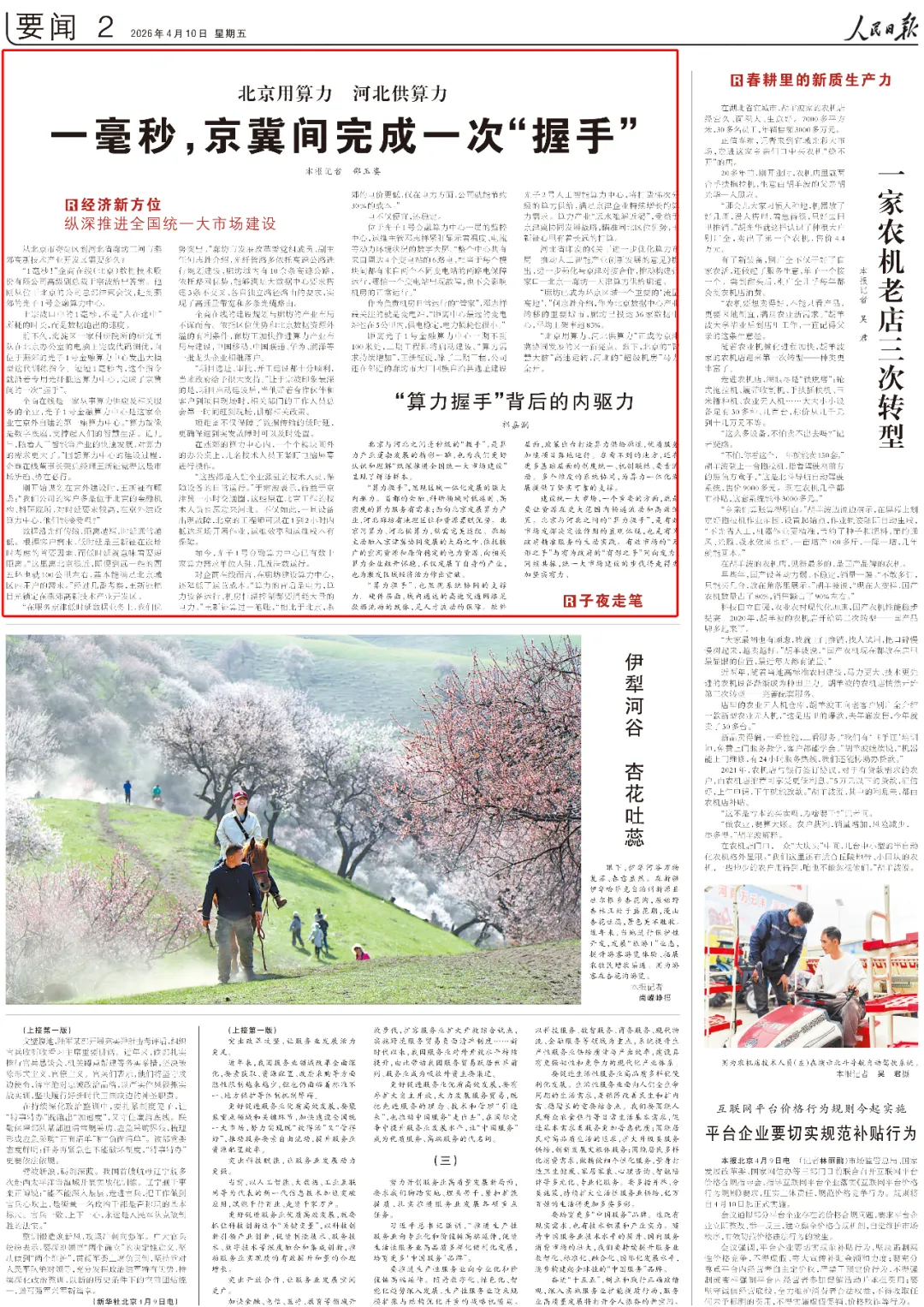 人民日报4月10日关注河北:北京用算力,河北供算力,一毫秒,京冀间完成一次“握手”。