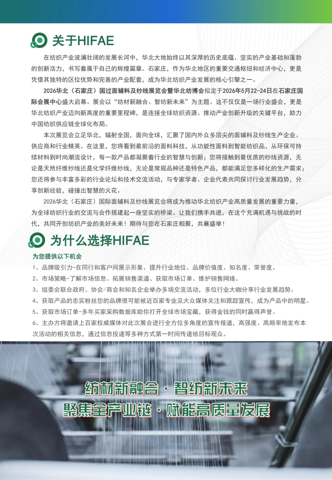 展会预定中:2026华北(石家庄)国际面辅料及纱线展览会