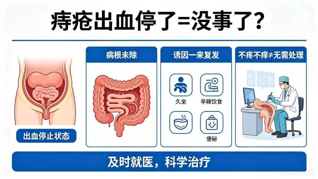痔疮出血自己停了,不是好了,是这次过去了。病根还在,下次诱因一来还会发作。不疼不痒不代表可以不管。该调整调整,该检查检查,别让“觉得没事了”变成真正的问题。