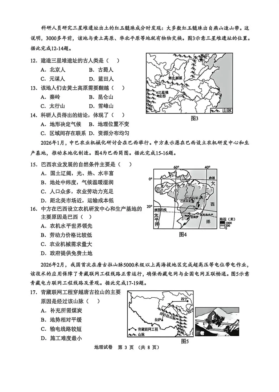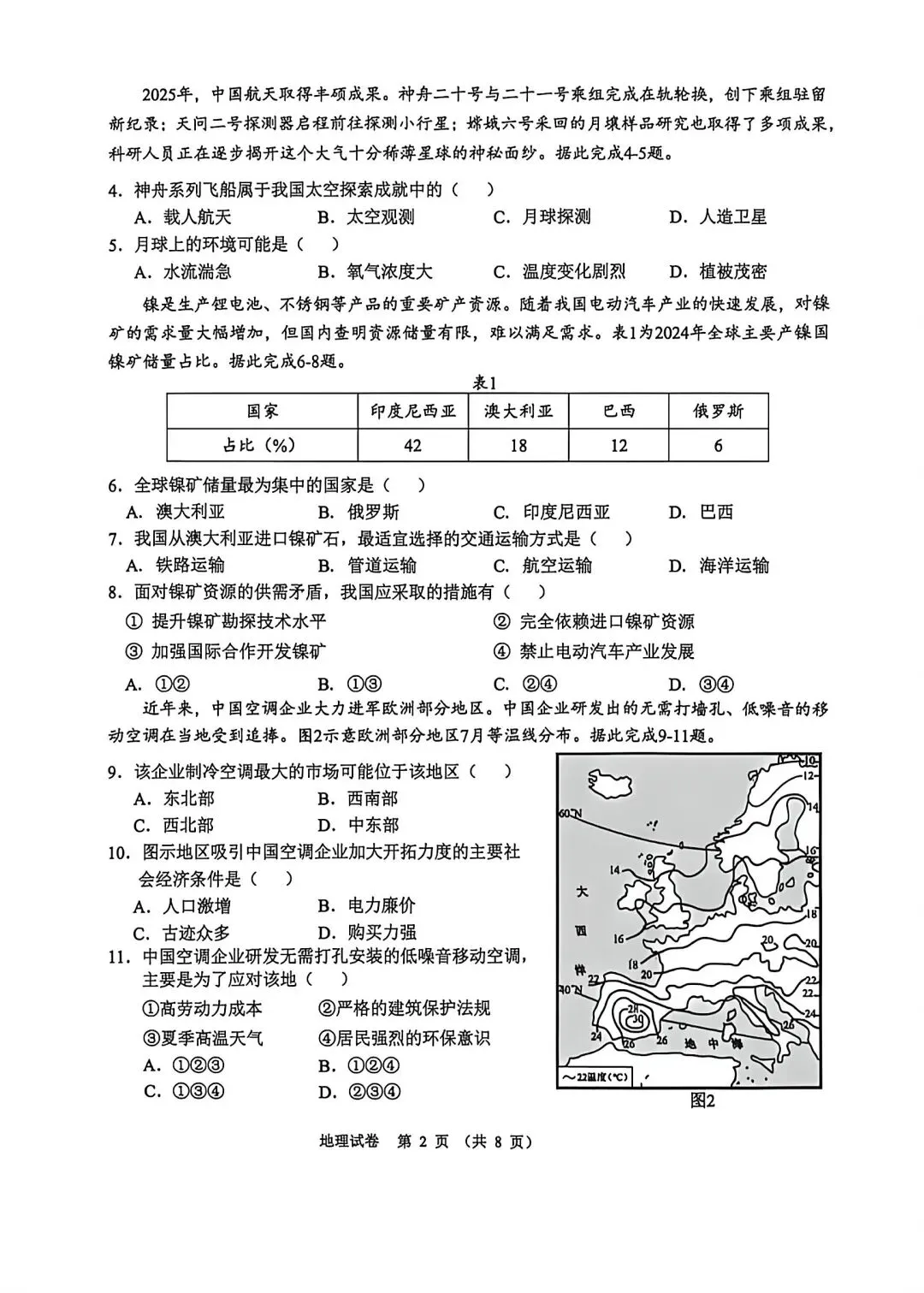 >试卷资源||2026年石家庄新华区初中学业质量监测地理试卷