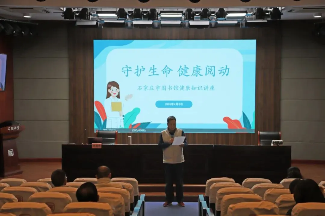 为深入贯彻落实《“健康中国2030”规划纲要》以及《健康中国行动(2019—2030年)》相关指导意见,石家庄市图书馆工会于4月8日上午成功举办“守护生命,健康阅动”健康知识专题讲座。本次活动旨在增强全体职工的健康防护意识,普及科学健康知识,营造关爱生命、重视健康的良好氛围。