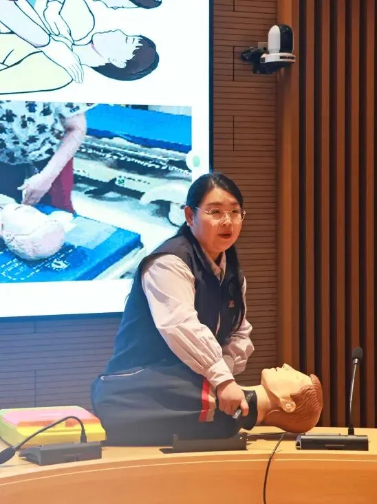 讲座邀请安全健康教育网河北站的讲师主讲,围绕突发公共卫生事故的应急处理(CPR 心肺复苏 急救+演练、海姆立克急救、AED除颤仪的正确使用)、高发急慢性心脑血管疾病的防治知识(心源性猝死、急性心梗、脑卒中、四高)等内容,分为“应急实操”与“慢病防治”两大模块,同步进行理论讲授与现场演示。职工们踊跃参与,气氛热烈。