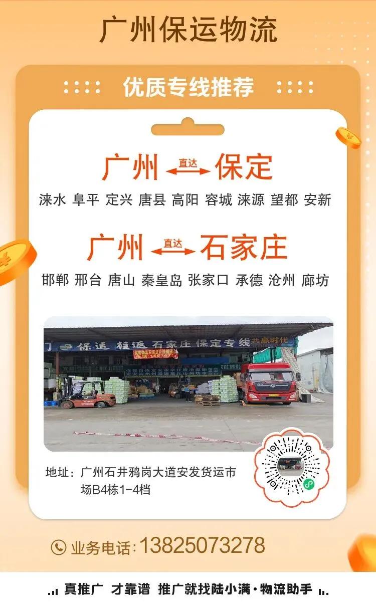 【公司名称】广州保运物流【辐射线路】涞水 阜平 定兴 唐县 高阳 容城 涞源 望都 安新 易县 曲阳 蠡县 顺平 博野 雄县 涿州 定州 安国 白沟 高碑店 邯郸 邢台 唐山 秦皇岛 张家口 承德 沧州 廊坊 衡水 井陉 正定 行唐 灵寿 高邑 深泽 赞皇 无极 平山 元氏 赵县 辛集 藁城 晋州 新乐 邯郸县 临漳 成安 大名 涉县 磁县 邱县 鸡泽 广平 馆陶 魏县 曲周 武安 邢台县 临城 内丘 柏乡 隆尧 任县 南和 宁晋 巨鹿 新河 广宗 平乡 威县 清河 临西 南宫 沙河 滦州 滦南 乐亭 迁西 玉田 唐海 遵化 迁安 鸦鸿桥 青龙 昌黎 卢龙 宣化 张北 康保 沽源 尚义 蔚县 阳原 怀安 怀来 涿鹿 赤城 承德县 兴隆 平泉 滦平 隆化 丰宁 宽城 围场 沧县 青县 东光 海兴 盐山 肃宁 南皮 吴桥 献县 孟村 泊头 任丘 黄骅 河间 米各庄 胜芳 燕郊 永清 香河 大城 文安 大厂 霸州 三河 固安 枣强 武邑 武强 饶阳 安平 故城 景县 阜城 深州