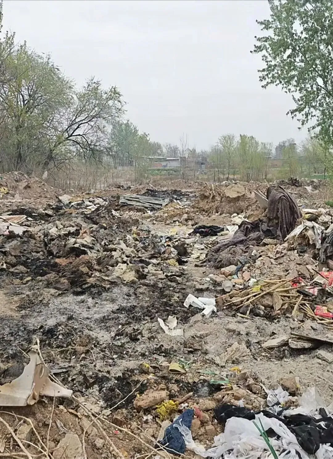 近日,据群众反映,辛集市小辛庄乡小章村南约100米处,存在大规模倾倒、掩埋、焚烧垃圾及固体废物的行为。焚烧产生的有毒物质直接飘散至空气中,掩埋的垃圾对周边耕地和地下水造成污染风险。