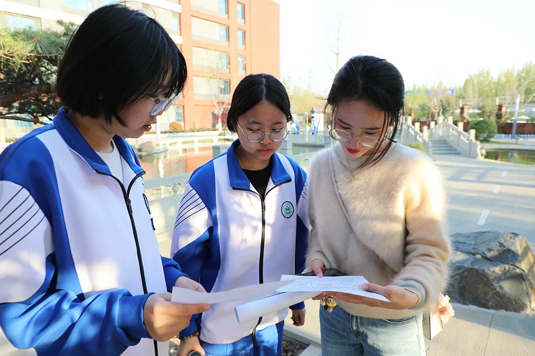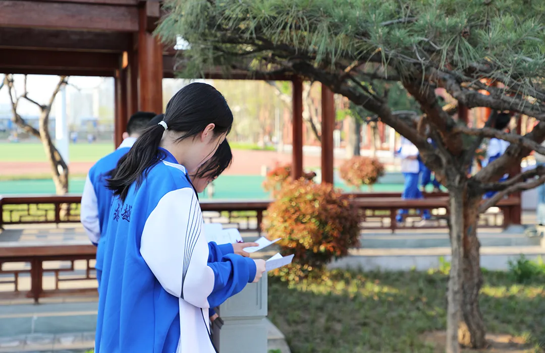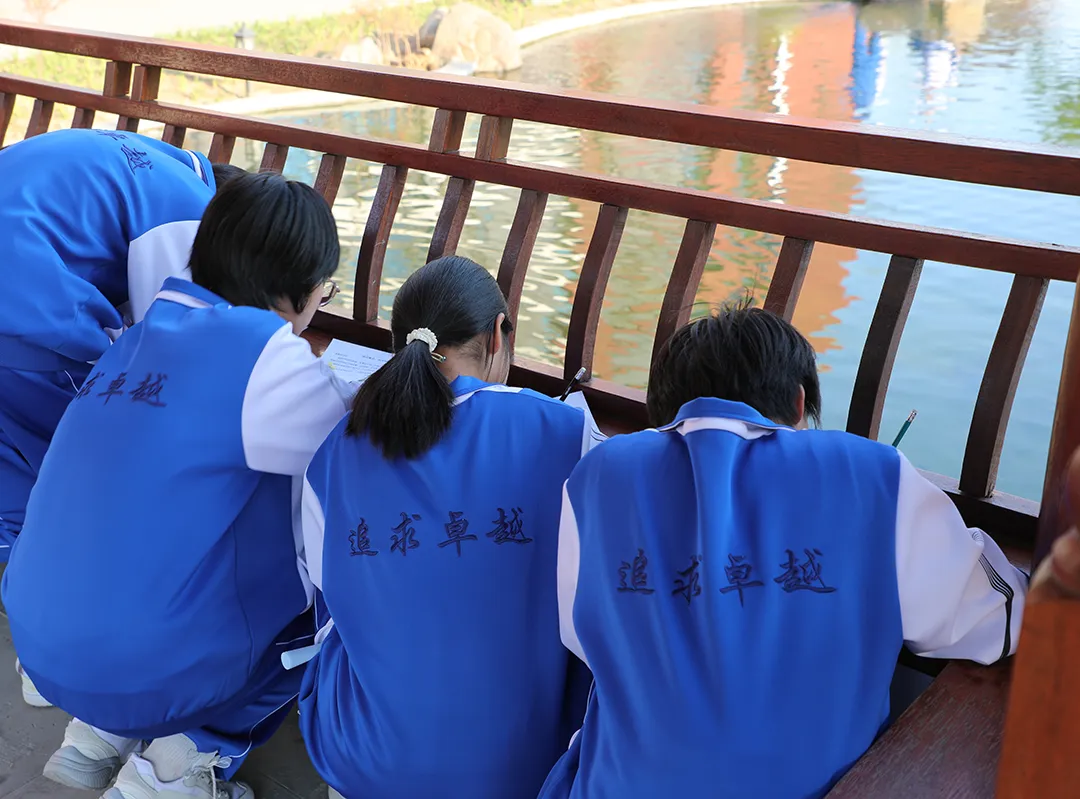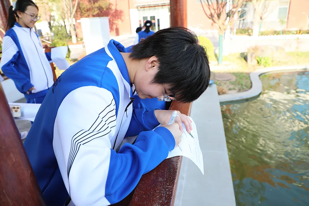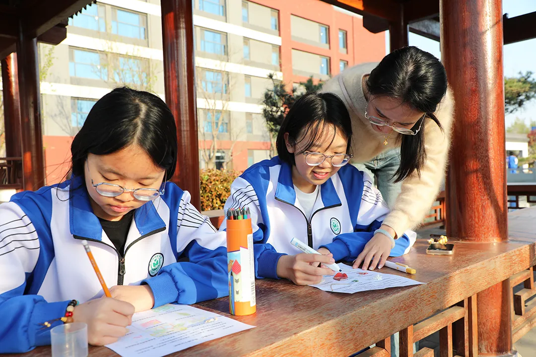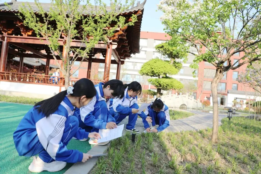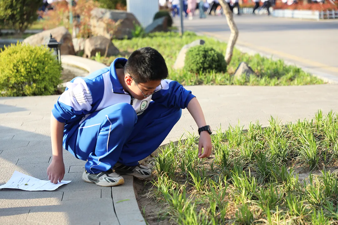 有人站在花坛边,认真闻樱花到底有没有味道;有人追着风去摸刚冒头的新芽;有人趴在小桥上看鱼跃出水面;也有人鼓起勇气,找老师和同学要一句春日祝福。