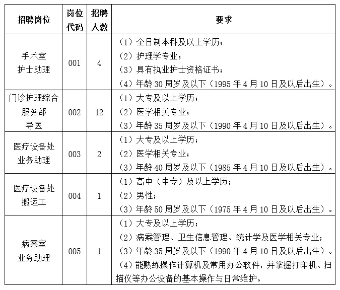 (5)手术室护士助理岗位需提供执业护士资格证书。