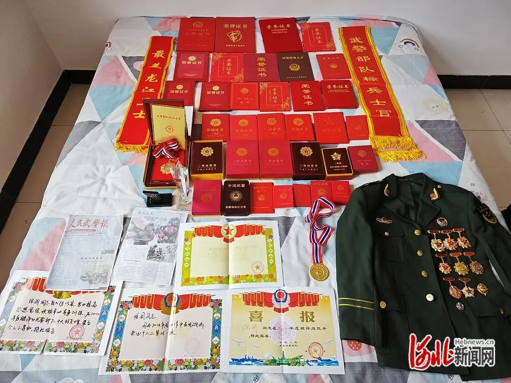 消息传出,徐闯在全国各地的战友纷纷赶来。收拾徐闯遗物时,一个装满证书、奖状、奖章和奖杯的箱子令人动容。“全军优秀士官人才”二等奖、武警总队突击专业“中级反恐特殊人才”、武警部队第五届“十大标兵士官”、极限训练勇士证书……证书铺满了整整一张双人床,无声地诉说着这位退役军人的不凡过往。