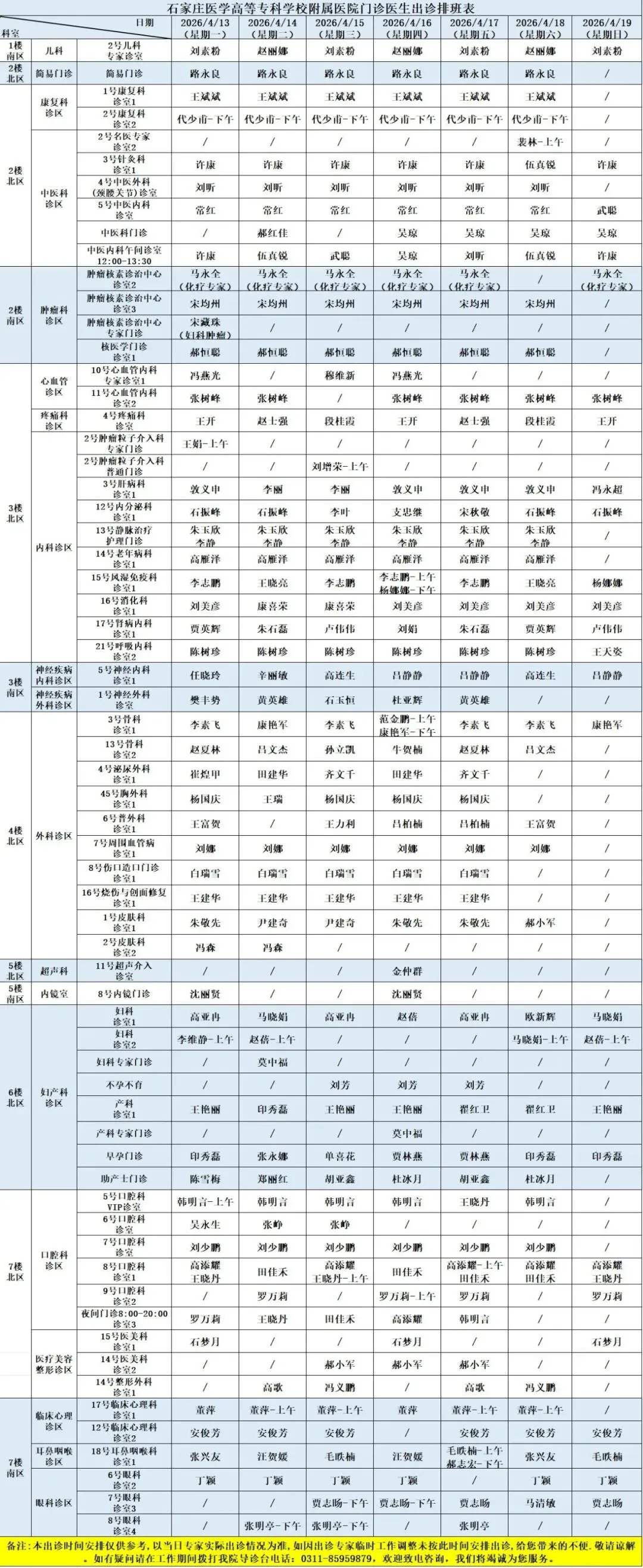 医院开设预防保健科、内科、外科、妇产科、儿科、眼科、耳鼻喉科、口腔科、皮肤科、医疗美容科、肿瘤科、急诊科、重症医学科、康复科、麻醉科、医学检验科、病理科、医学影像科、中医科等50余个一、二级临床、医技科室,能够完成疑难、危重患者的多学科综合治疗。