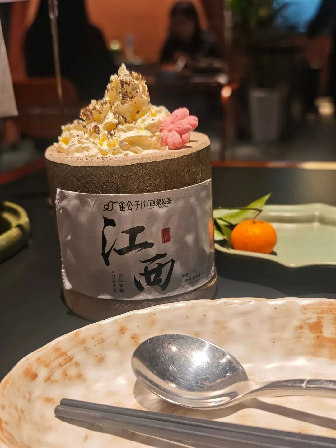 点了他们家的竹筒奶茶,真的很有记忆点!竹筒造型很适合拍照,味道不是很甜,茶味比较明显,吃完辣菜喝一口刚好解腻。