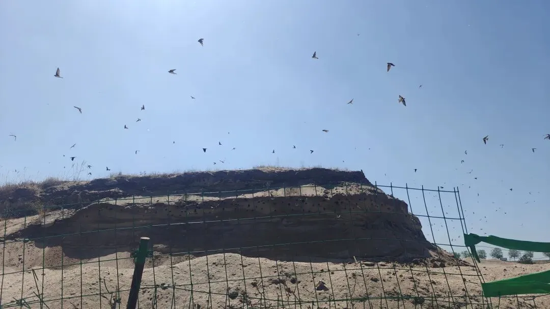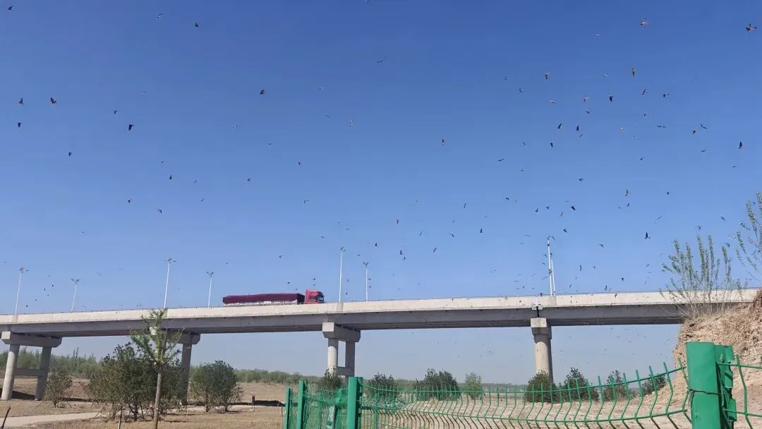 每年3月,崖沙燕便会跨越千里,飞回石家庄的这片河岸。4月筑巢,5-6月雏鸟破壳,整个春夏,这里都是它们的乐园。晨昏时分,万鸟齐飞,褐色的身影在澄澈的蓝天中穿梭、盘旋,时而掠过水面捕食昆虫,时而成群结队掠过高架桥,翅膀划破风的声音,是春日最鲜活的交响。