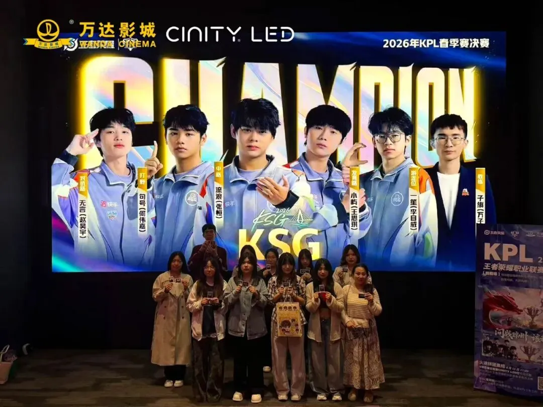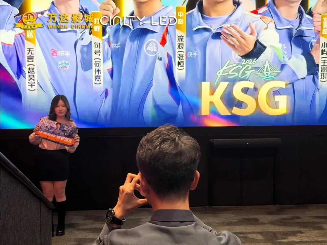 活动开启前,影院外早已排起长队,眼神里满是期待与笃定。大厅内可见KSG专属应援元素,战队物料,每一处细节都藏着对战队的全力支持,等待着每一位热爱电竞的同频伙伴。