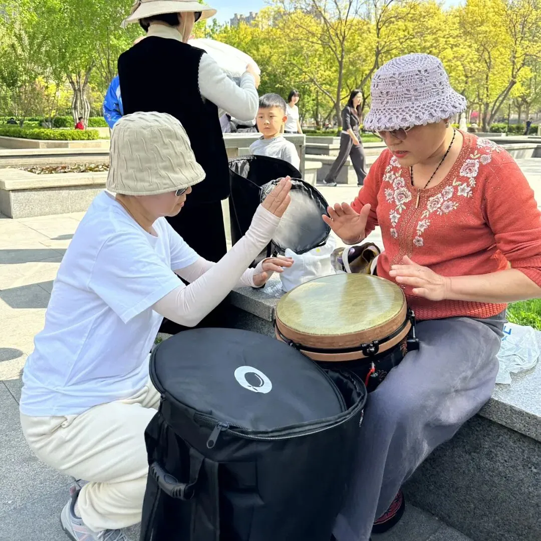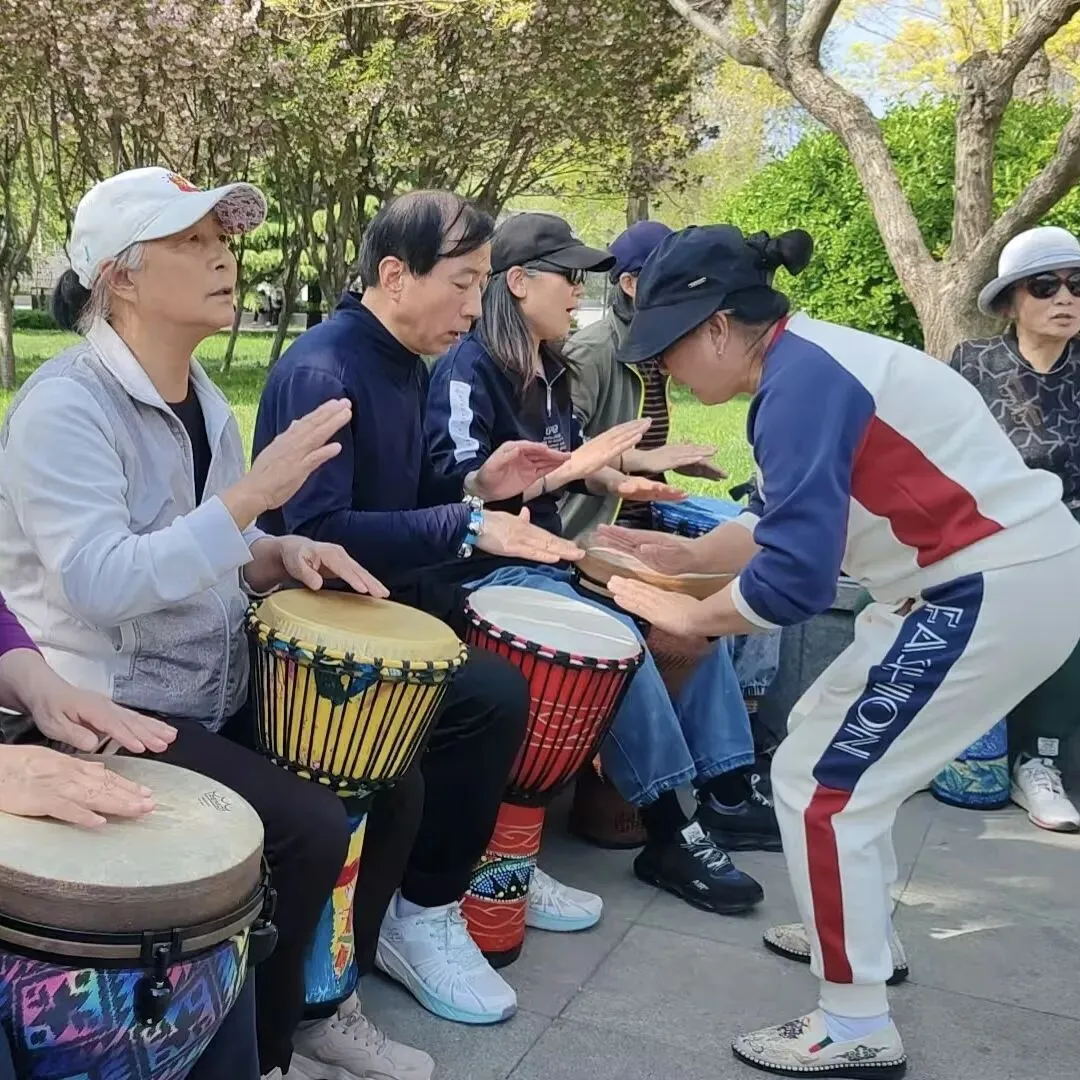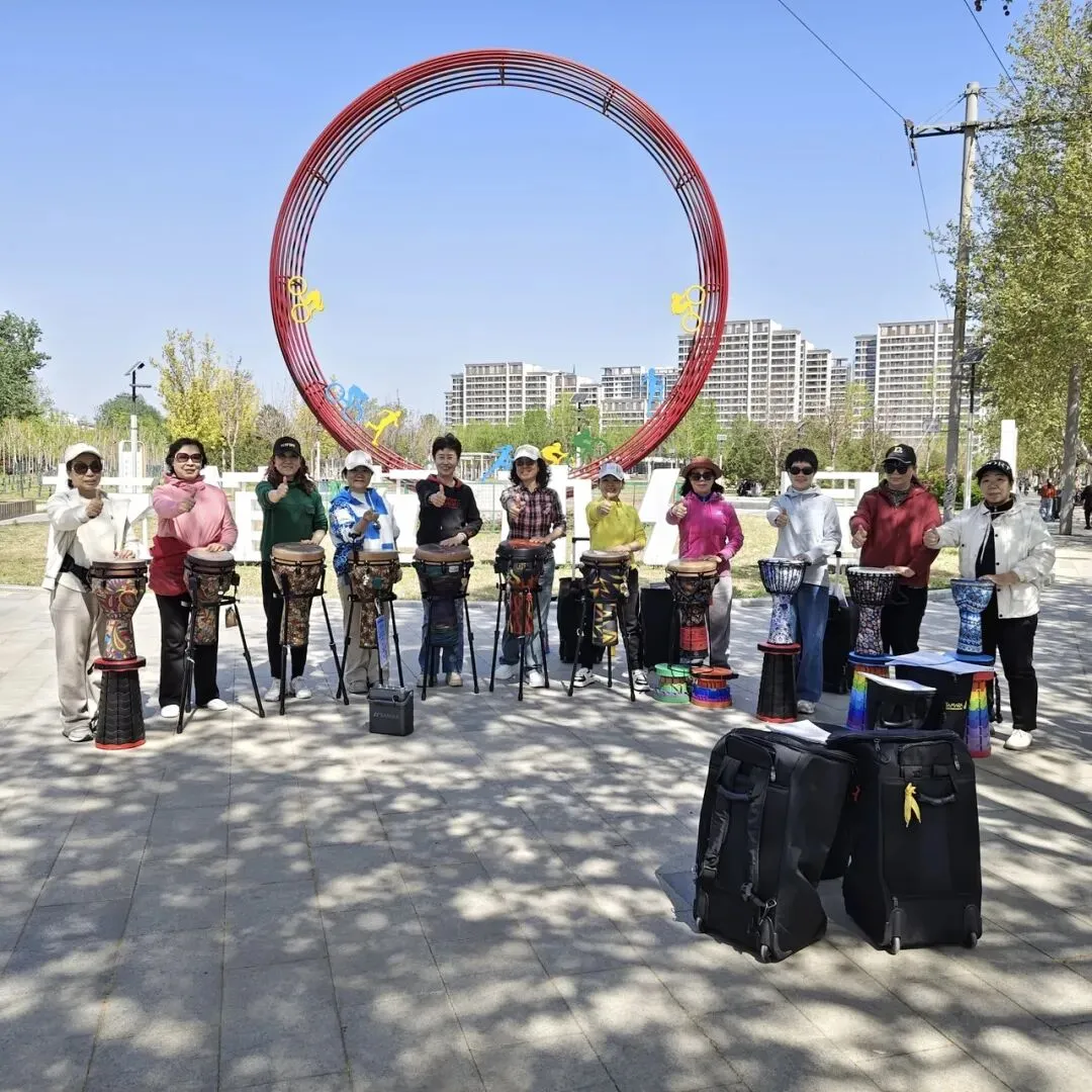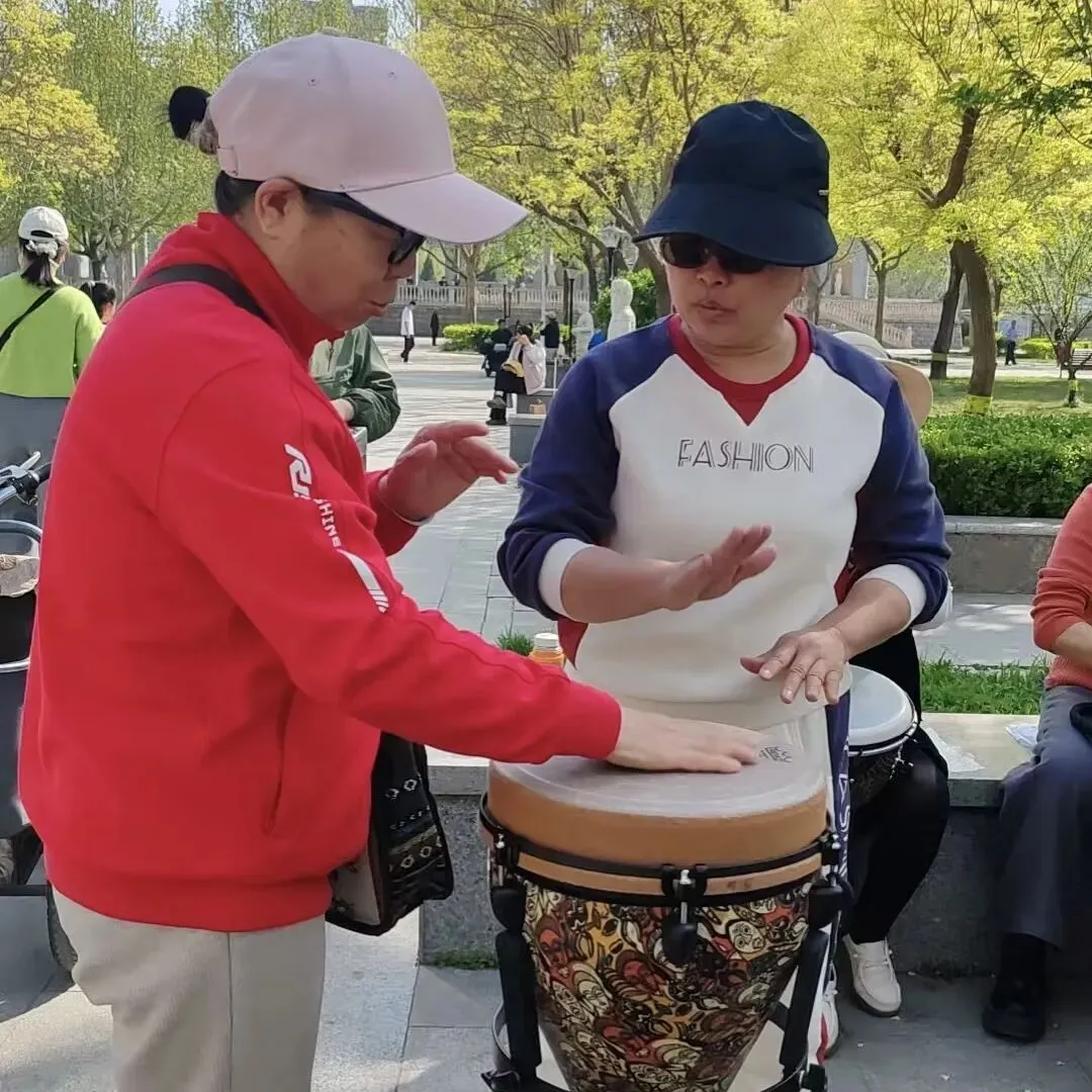 伙伴们耐心指导、热情讲解,让零基础的新朋友也能轻松上手,在欧韵公园的春日里,感受到非洲鼓的魅力,收获满满的快乐。