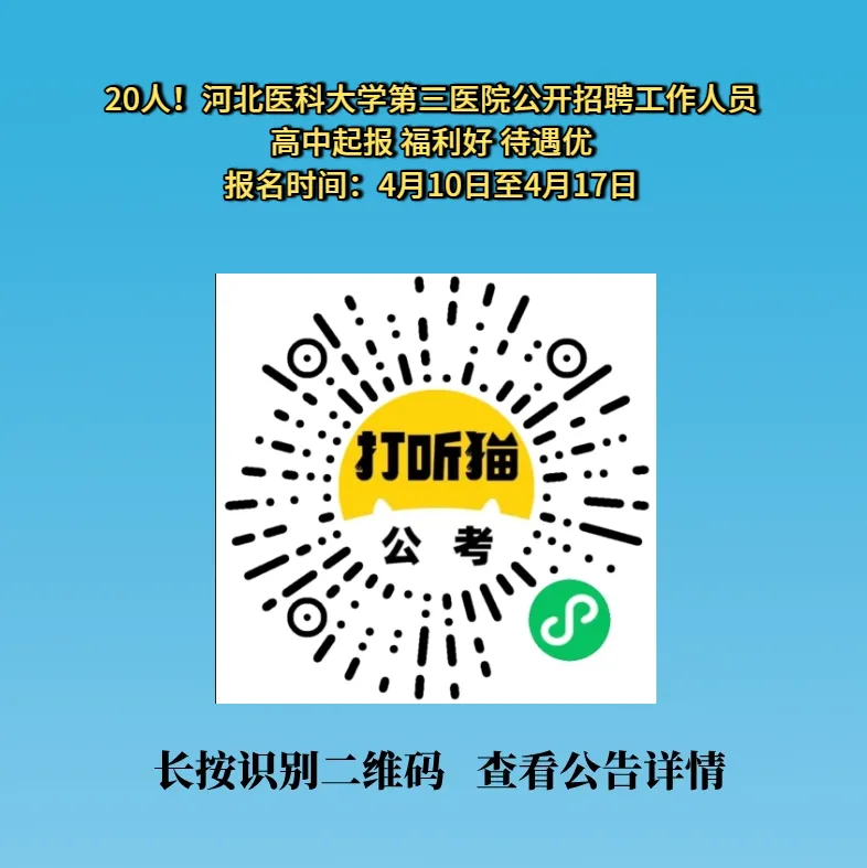 >【石家庄招聘】20人!高中起报!河北医科大学第三医院公开招聘工作人员!