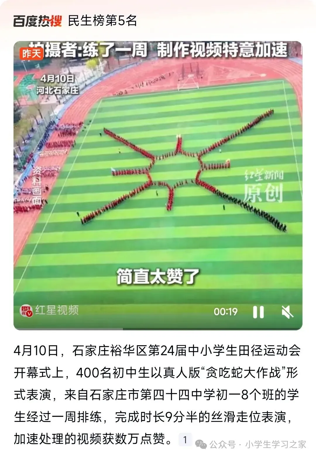 石家庄400名初中生运动会演绎贪吃蛇走位,丝滑表演引数万点赞