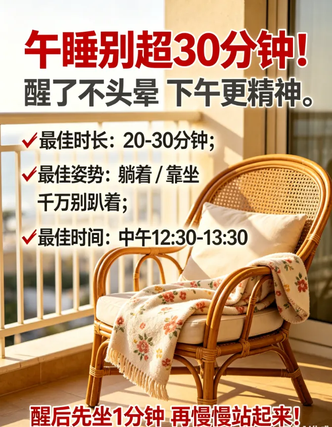 但咱好多人午睡都爱“睡过头”,一躺就是两三个小时,结果醒了之后头晕乎乎的,一下午都没精神!今天就告诉大家一个**黄金午睡时间**,医生说这样睡,醒了不头晕,下午还倍儿精神!
