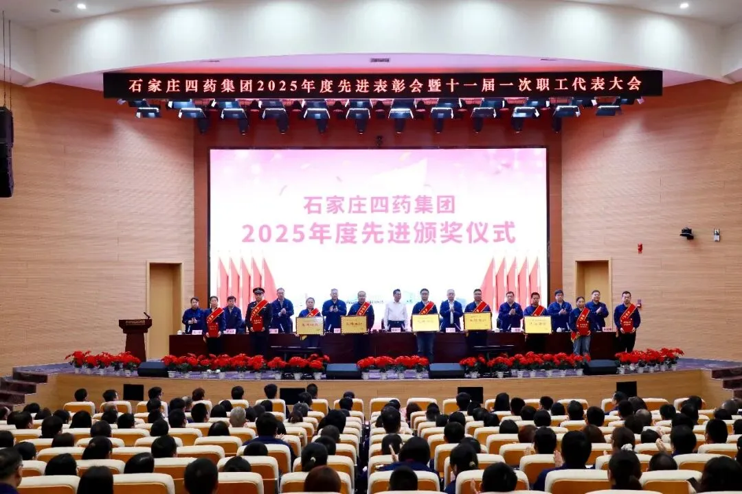 春和景明,万物勃发。4月12日,石家庄四药集团2025年度先进表彰会暨十一届一次职工代表大会在集团研发中心报告厅召开。大会主席团成员曲继广、苏学军、吴恒耀、史建会、孟国、王春发、孙立杰、黄晓峰、杨娴在主席台就座,集团职工代表及先进集体、先进工作(生产)者260人齐聚一堂,共绘发展蓝图,共谋发展新篇。大会执行主席、集团总裁吴恒耀主持大会。