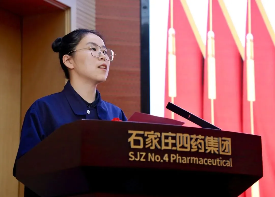 来自质量技术管理中心口服制剂检验部的解美娇代表受表彰的先进个人发言。她表示,将把这份荣誉化作前行的动力,努力在集团高质量发展新征程上再立新功。