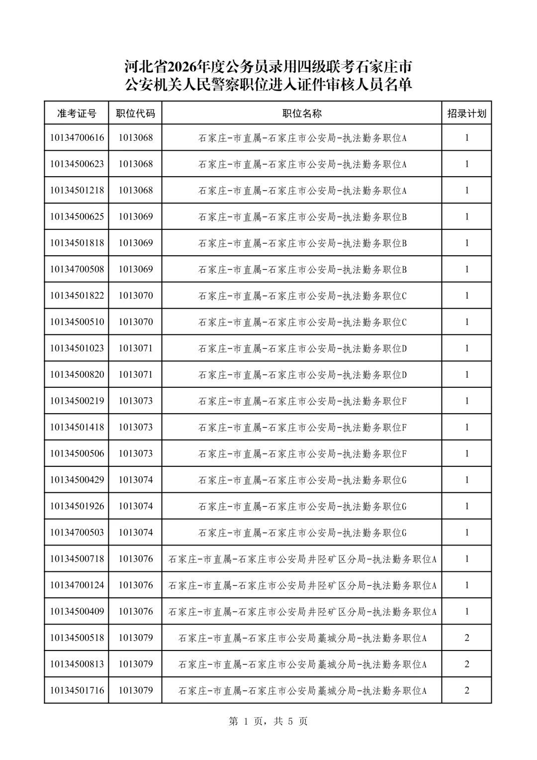 2026河北省考(石家庄&监狱&唐山)公安体测合格名单
