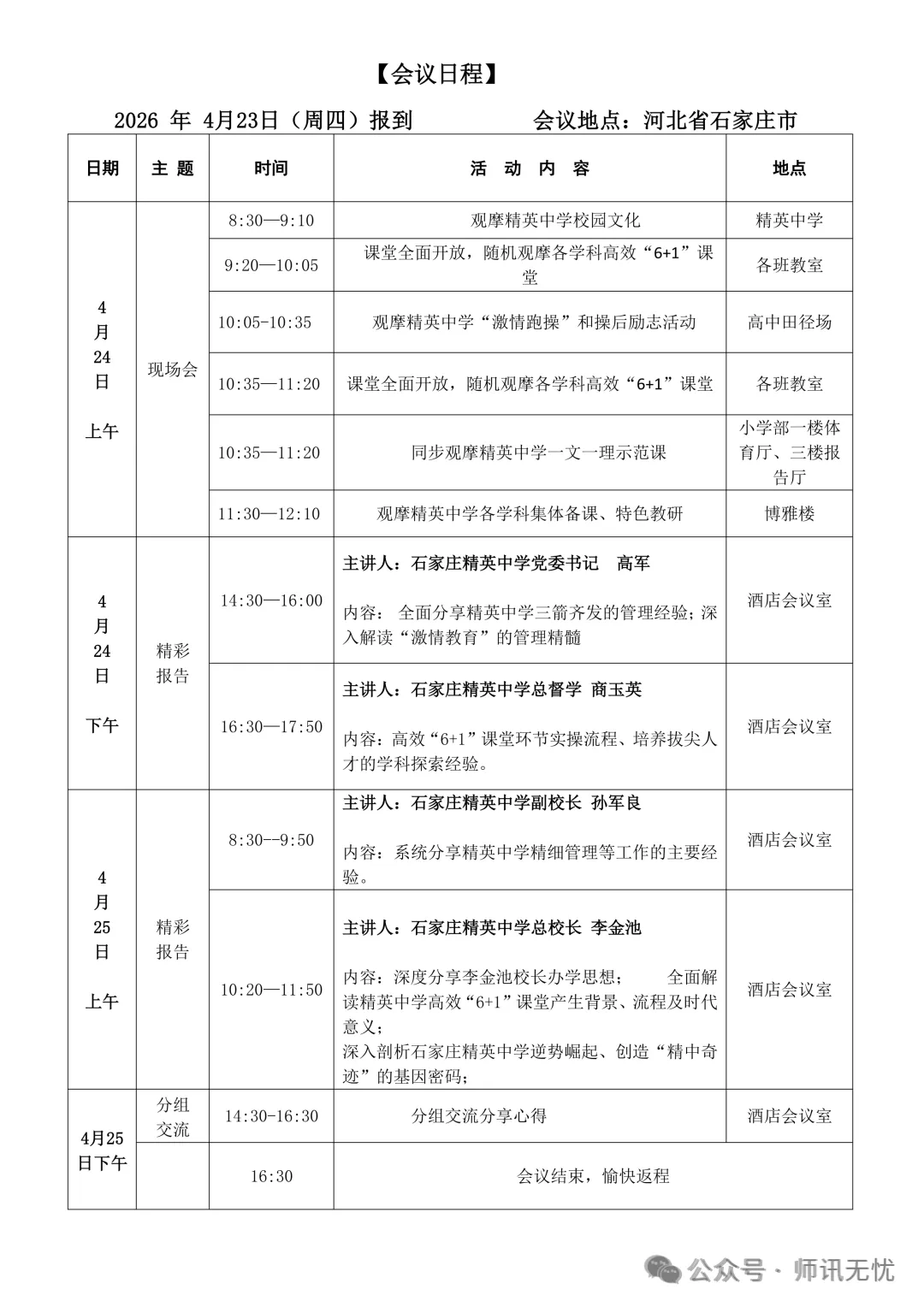 石家庄精英中学办学特色与实地观摩主题培训