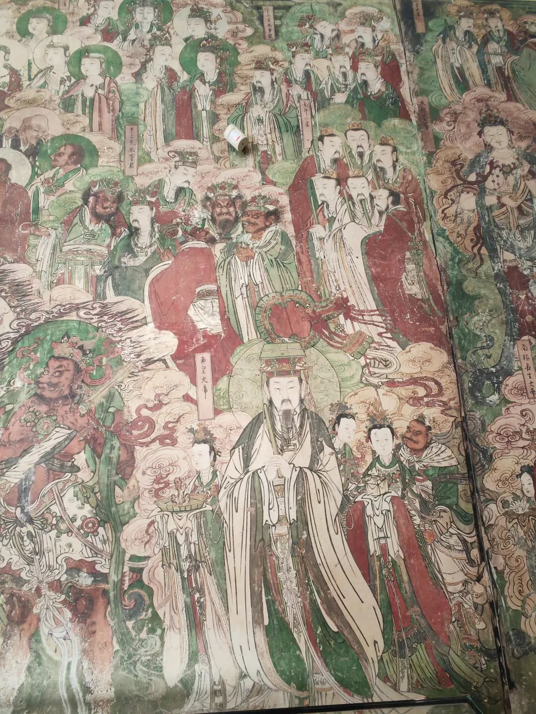 能够看得出,每一组人物都有清晰榜题,神态细节无一不精,或慈悲、或威严、或端庄、或肃穆,508个形象无一重复,仿佛一壁之间,藏着整个天地众生,堪称天神地仙的大聚会。