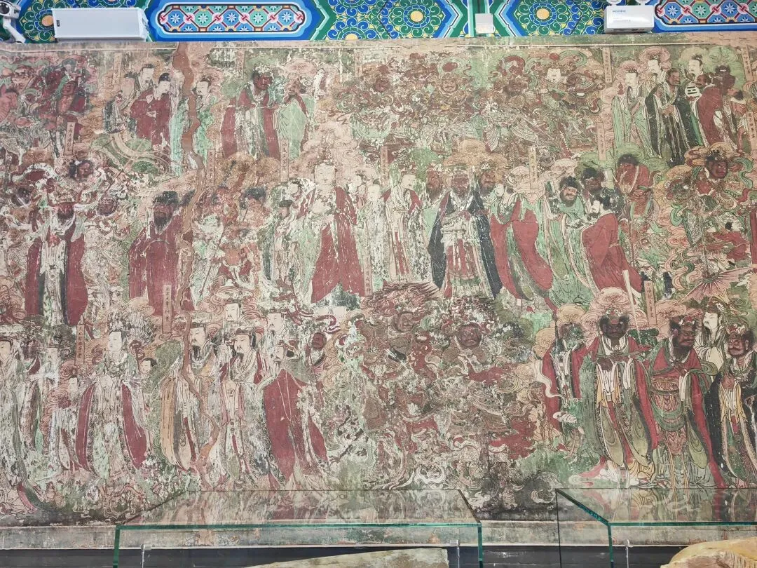最让人惊叹的,是壁画的技艺:线条遒劲流畅,衣袂飘飘如迎风而动,所谓“吴带当风”大抵如此吧。站在壁画前,屏息凝视,那一刻仿佛穿越了时空,与明代画匠对话,感受他们一笔一画倾注的心血与信仰。