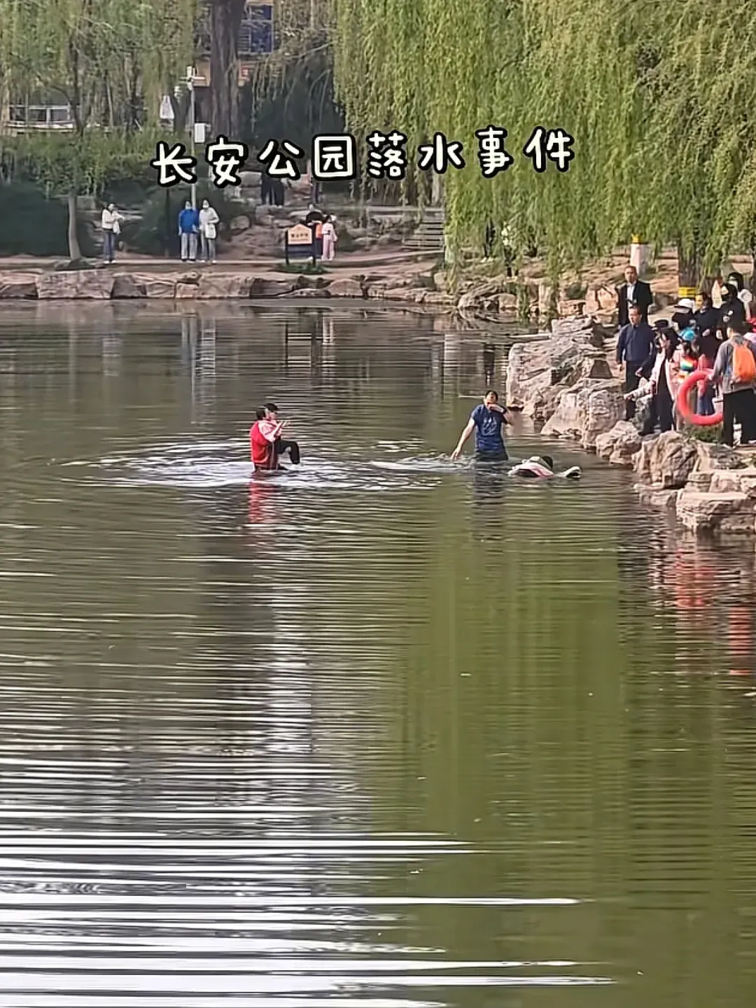 该网友发文介绍,11日下午6时许,她在河北石家庄市的长安公园游玩,看到一名小女孩落水,岸边的一名女子随即跳入水中,但似乎不会游泳,女子在水中无法站起来,也遇到了危险。所幸遇到了红衣男子出手相助。