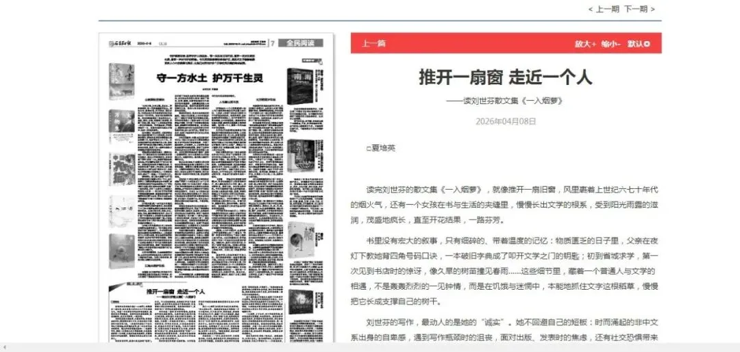 读完刘世芬的散文集《一入烟萝》,就像推开一扇旧窗,风里裹着上世纪六七十年代的烟火气,还有一个女孩在书与生活的夹缝里,慢慢长出文学的根系,受到阳光雨露的滋润,茂盛地疯长,直至开花结果,一路芬芳。