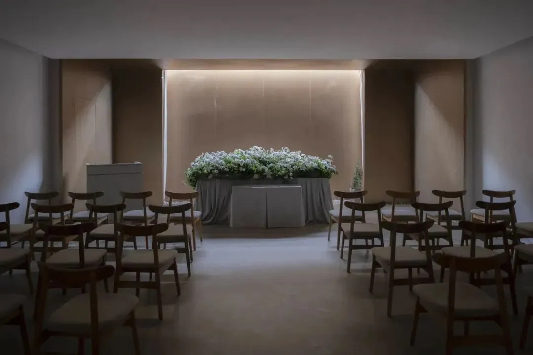 服务中心一层涵盖鲜花售卖、骨灰纪念堂、追思厅、家属VIP休息室等功能;二层设有餐厅,为悼念的家人提供休息进餐的空间;三层为服务讲解区,全程守候、贴心陪伴 。
