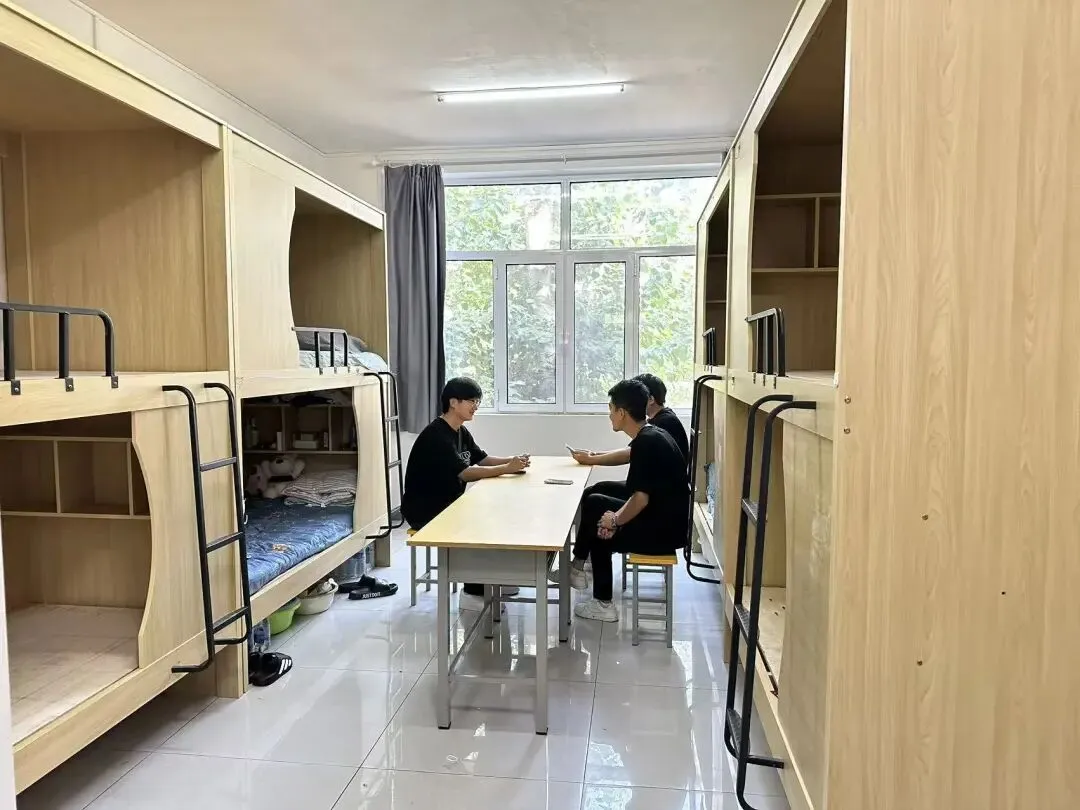 每个宿舍有标配空调、地暖,提供4人间和6人间、8人间。每层楼都有热水和洗衣机,冬暖夏凉,住得舒心才能学得安心。