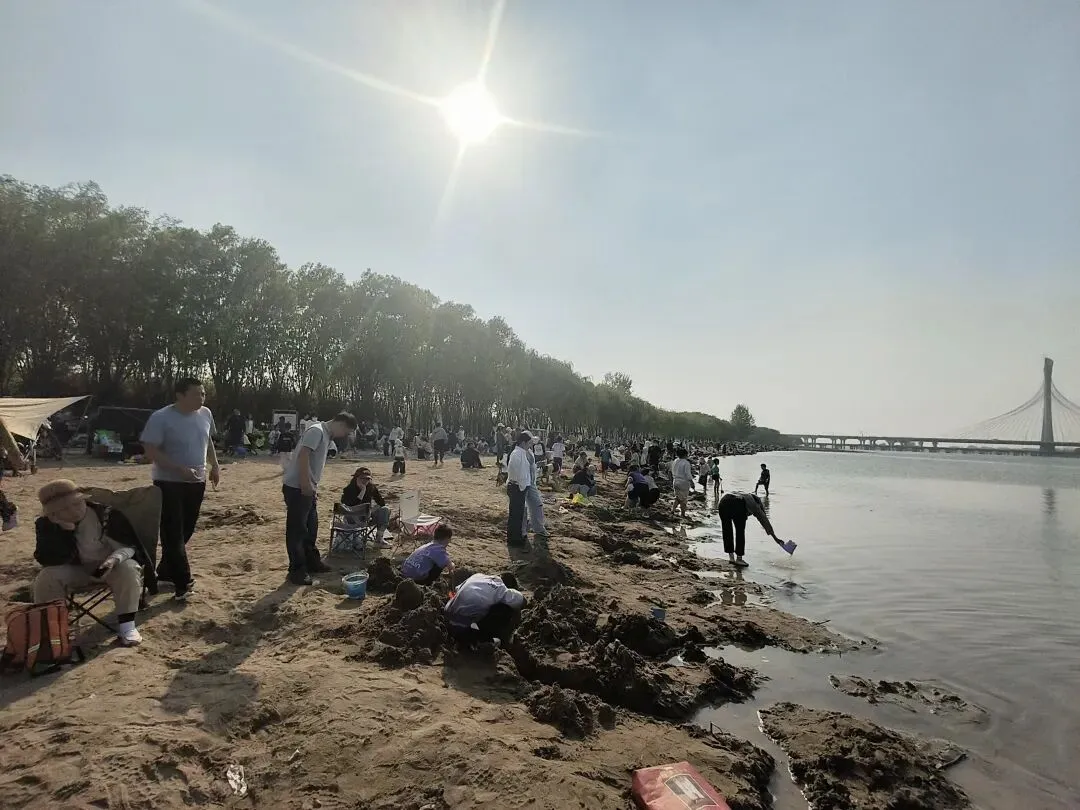 还没到河边,远远就看见车停了一长溜,路边全是人。