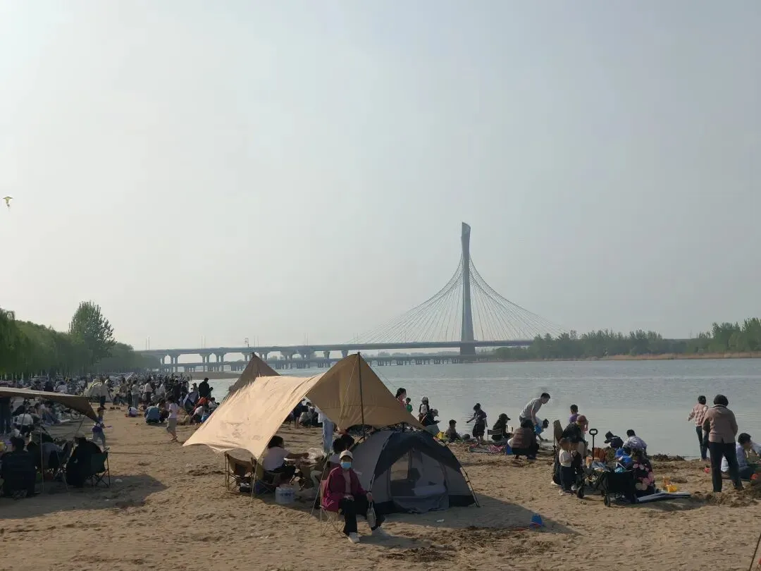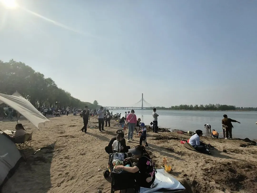 沙滩上、草地上、水边上,到处都是人。