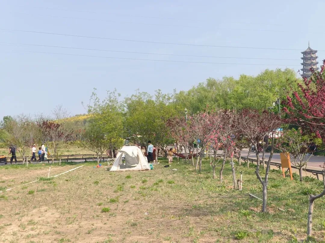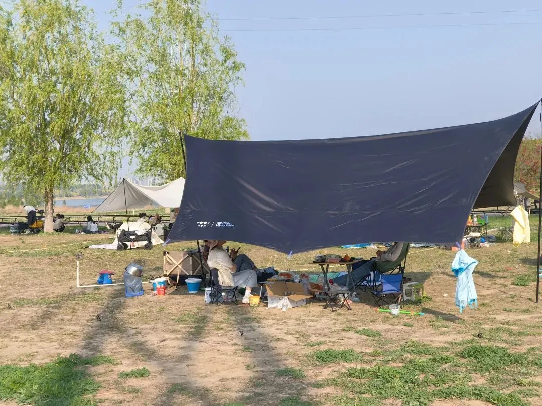 帐篷一个挨一个,吊床一棵树挂俩,野餐垫铺得像地砖。