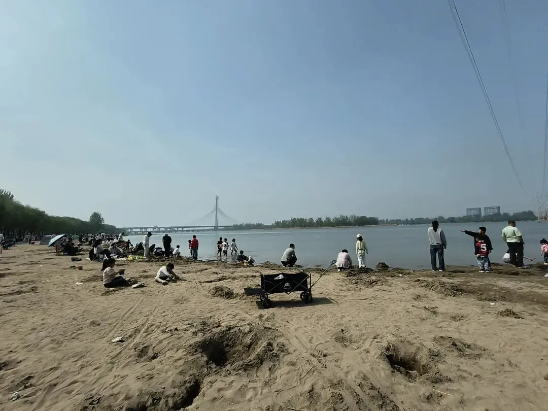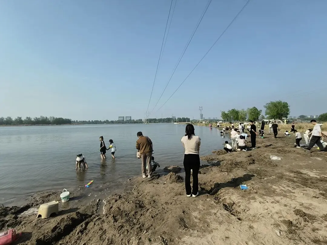 带上俩孩子,开车去了滹沱河。