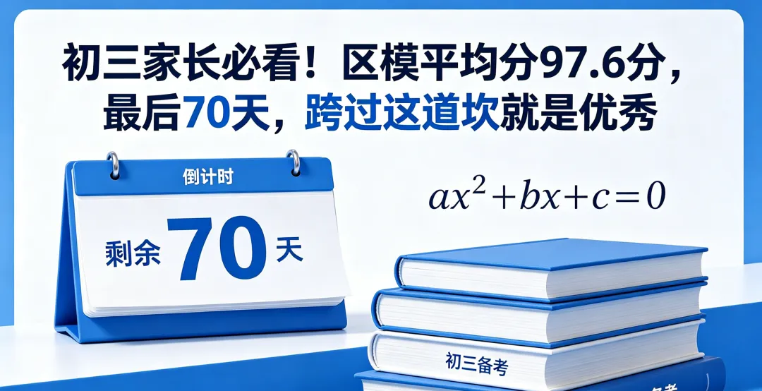 距离中考仅剩70余天,桥西区初三区模成绩统计出炉。数学平均分97.6分(满分120),看似整体平稳,实则藏着一道关键的分数分水岭。40%的孩子卡在90–99分区间,明明有实力冲优秀,却总因粗心、步骤、习惯原地踏步。区模不是终点,而是最精准的“查漏镜子”。最后阶段,方向对了,每一分钟都算数。一、区模数据真相:一半孩子卡在“优秀门槛”